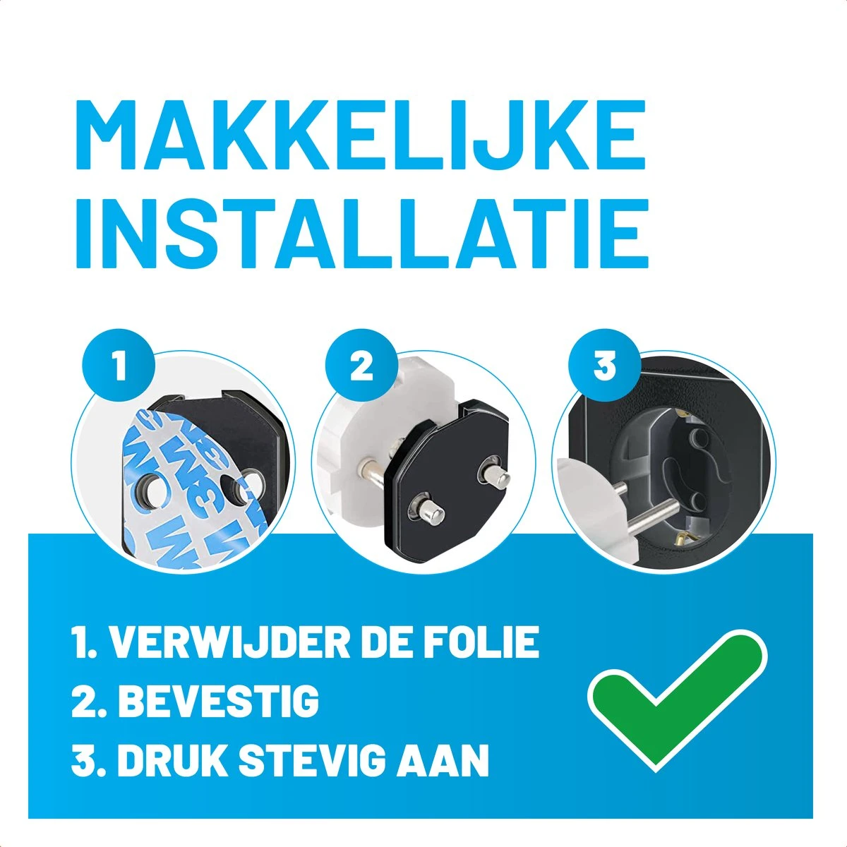 De 101Products® stopcontactbeveiligers zijn gebruiksvriendelijk en gemakkelijk te bevestigen. Binnen enkele seconden is de stopcontactbeveiliger gemonteerd. Bevestigd zonder beschadeging van de stopcontact, hecht stevig en laat na verwijderen geen sporen achter. Het discrete witte uiterlijk van de stopcontactbeveiliger past zich naadloos aan iedere interieur aan.