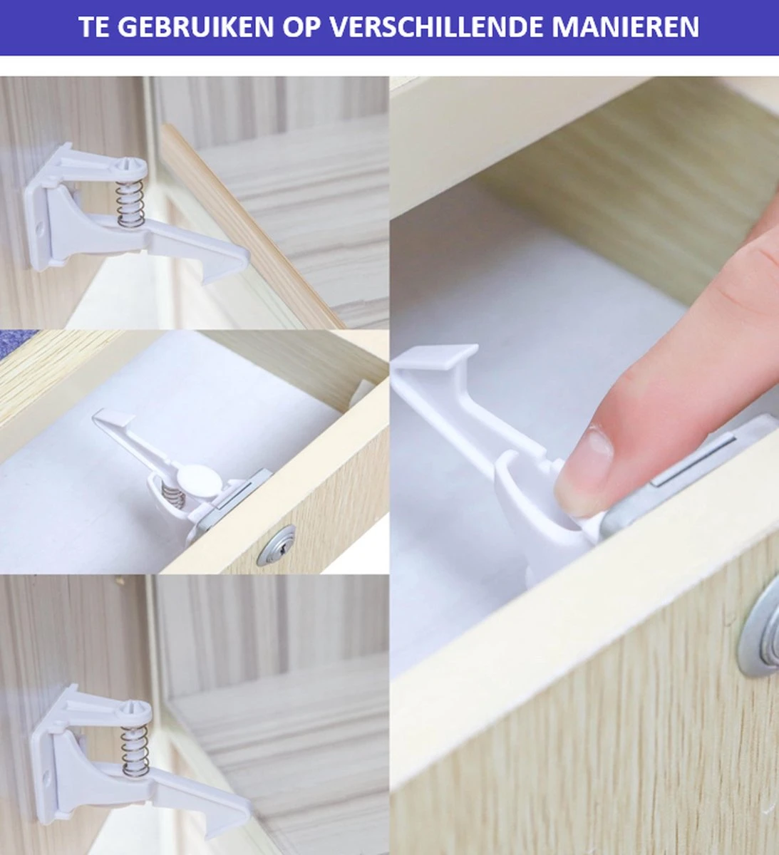 De veiligheidssloten van T&D Shop zijn multifunctioneel, je kunt ze ophangen in de (lade)kasten in de keuken, badkamer, woonkamer en dergelijke. Geschikt voor alle soorten kasten, zo kunt u altijd de veiligheid van uw kinderen waarborgen.
