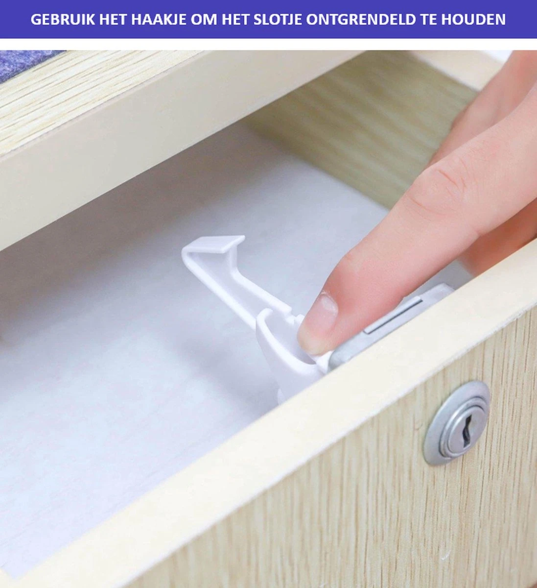 De veiligheidssloten van T&D Shop zijn multifunctioneel, je kunt ze ophangen in de (lade)kasten in de keuken, badkamer, woonkamer en dergelijke. Geschikt voor alle soorten kasten, zo kunt u altijd de veiligheid van uw kinderen waarborgen.