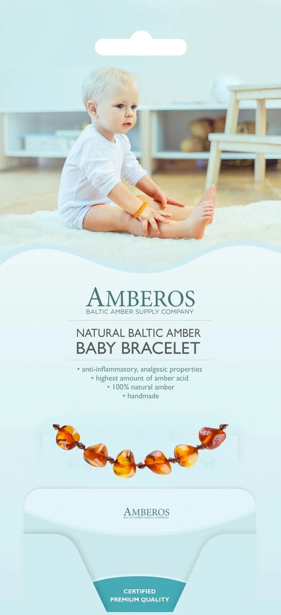 Deze schattige babyarmband van Amberos is van hoogwaardige kwaliteit Baltische barnsteen. De armband is gemaakt in Litouwen en bevat een certificaat van echtheid. De Baltische barnsteen afkomstig uit Litouwen staat bekend om zijn hoge niveau aan barnsteenzuur.