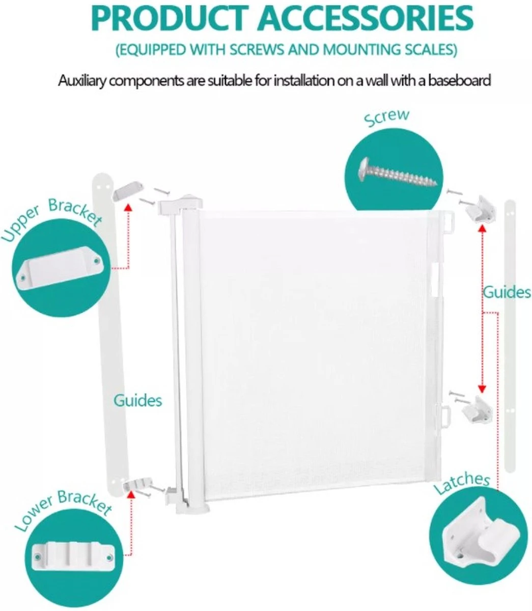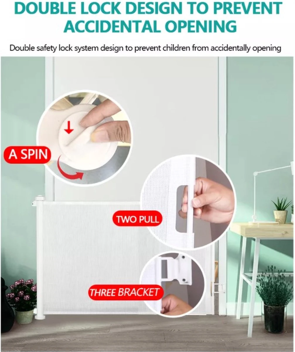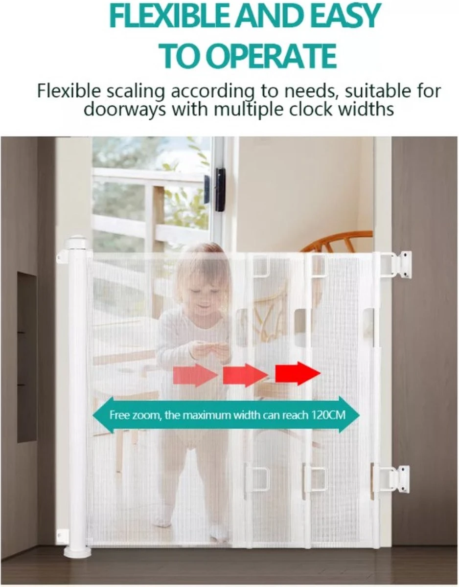 Het traphekje maakt gebruik van een oprolbaarsysteem, waardoor het hekje tussen deuropeningen, trap doorgangen of in een gang geplaatst kan worden. Het hekje kan maximaal 150 cm worden geopend. Is het hekje niet nodig of staat het in de weg? Dan kan je het hekje gewoon dichtrollen en weer openen wanneer gewenst is. Het hekje is beveiligd met een draaiknop, zodat kinderen geen kans krijgen om het hekje te openen en te verwijderen. Door de draaiknop kan het hekje onder spanning gezet worden, zodat het haakje waar het hekje aan bevestigd is niet los gemaakt kan worden.