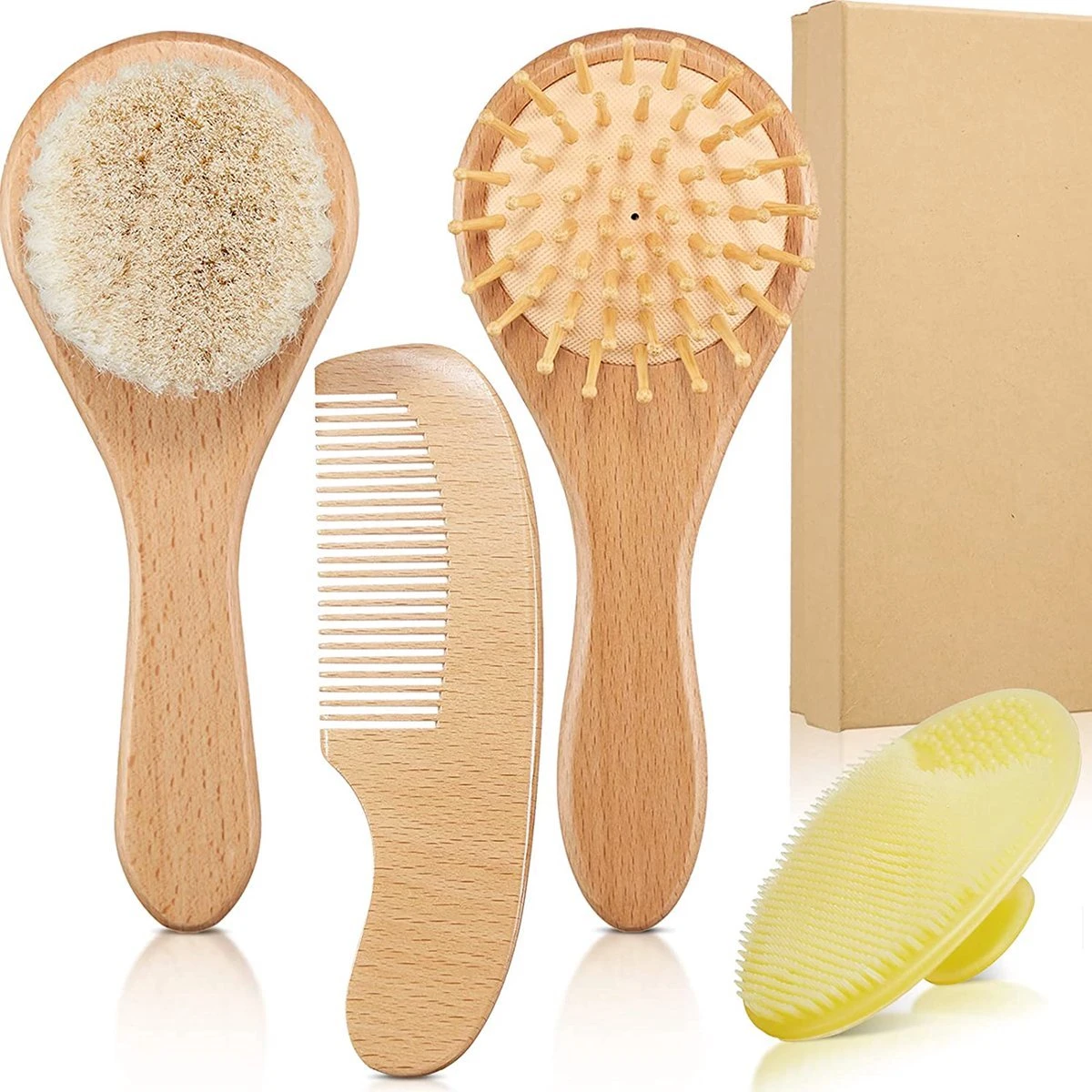 - Haarborstel en kam voor peuters, inclusief haarborstel, zachte massageborstel, houten kam, siliconenborstel