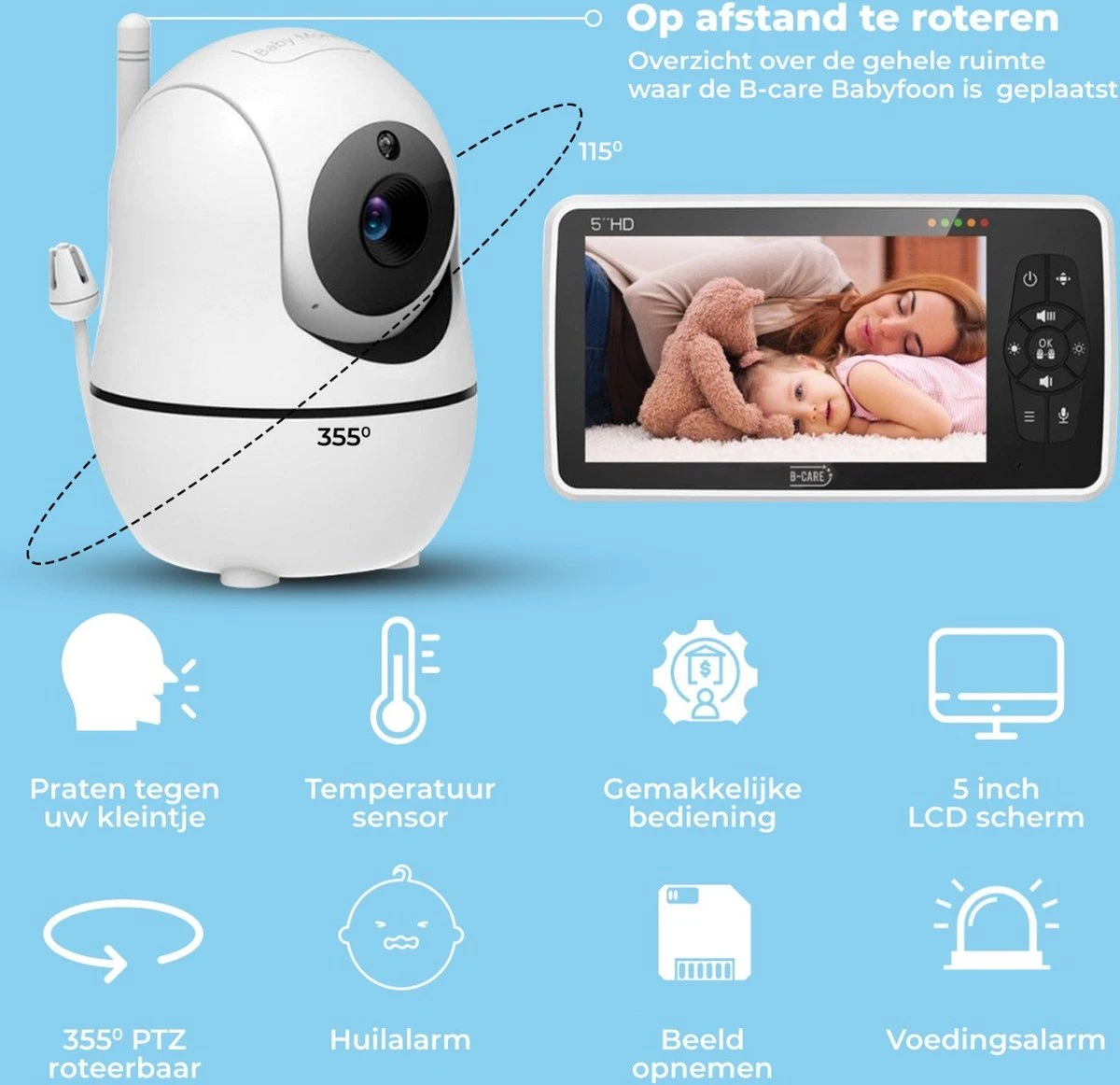 Met de nieuwste B-care Babyfoon met Camera beluister én bekijkt u zonder zorgen uw kindje. De babyfoon is uitgerust met de meest handige functies en nieuwe technologie.