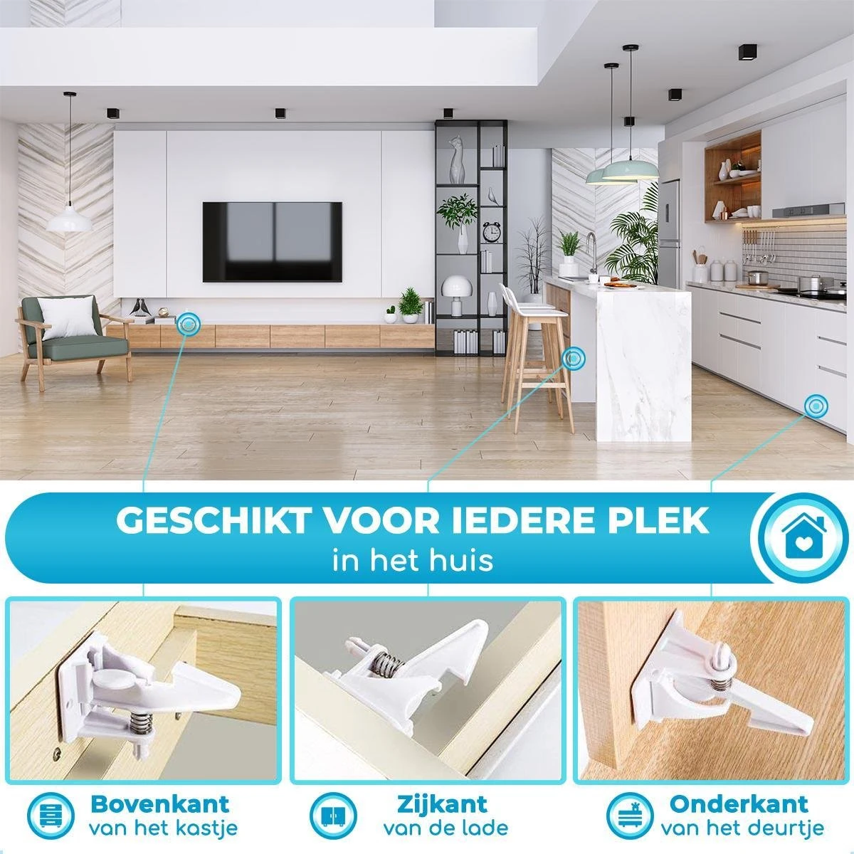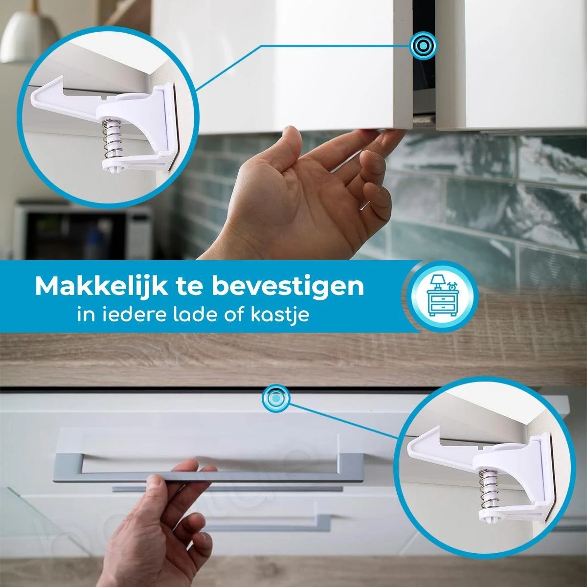 Om je kind zo veilig mogelijk de omgeving te laten ontdekken zijn deze onzichtbare kast- en ladesloten onmisbaar in en rondom uw woning. Ons product is ontwikkeld om te beschermen wat je lief is.