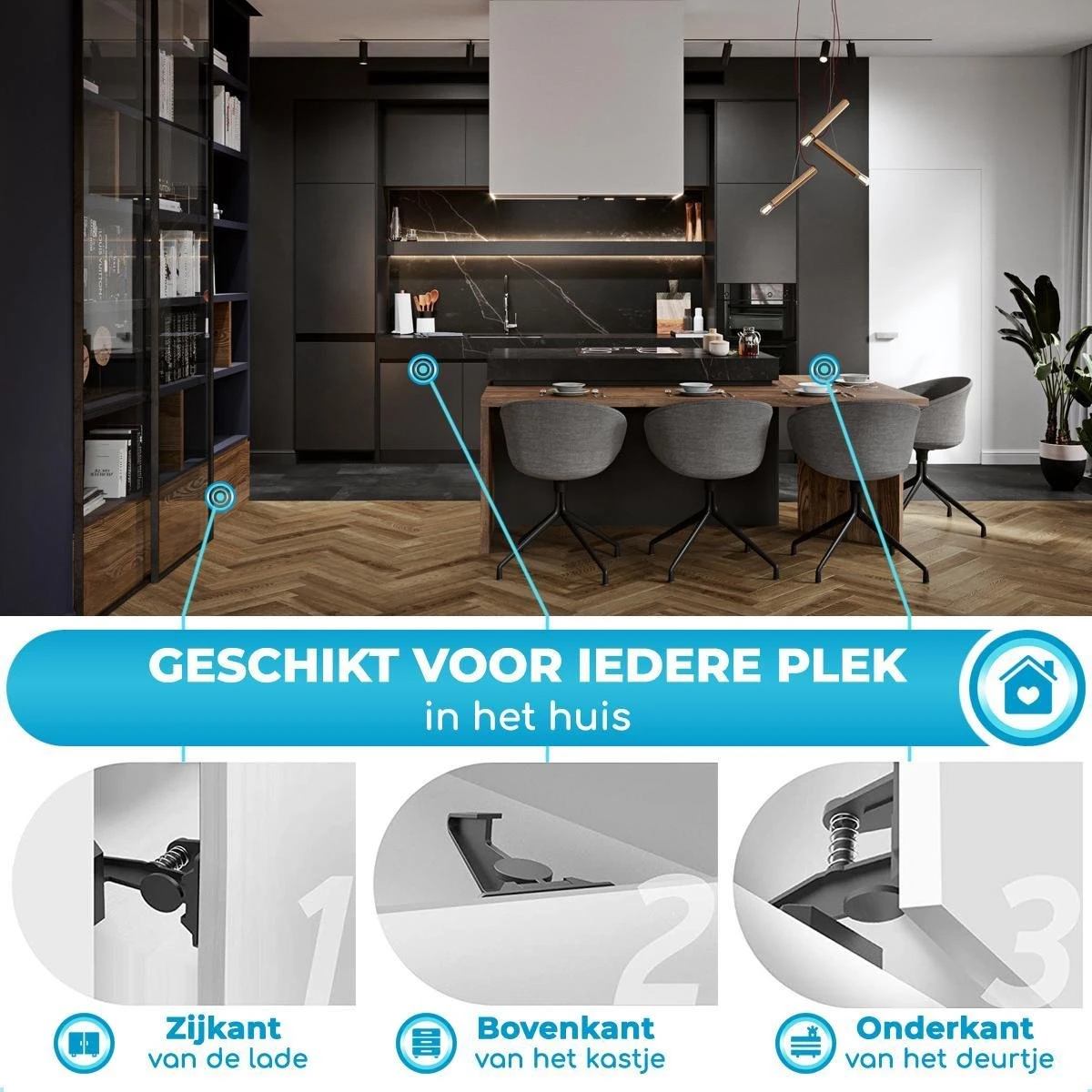 Om je kind zo veilig mogelijk de omgeving te laten ontdekken zijn deze onzichtbare kast- en ladesloten onmisbaar in en rondom uw woning. Ons product is ontwikkeld om te beschermen wat je lief is.