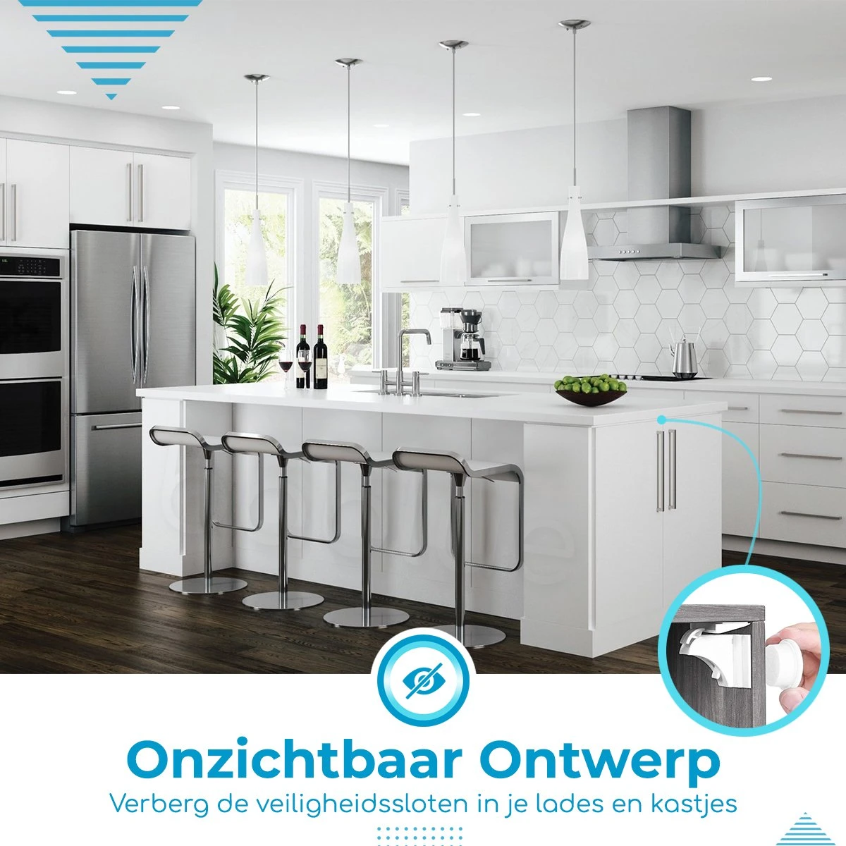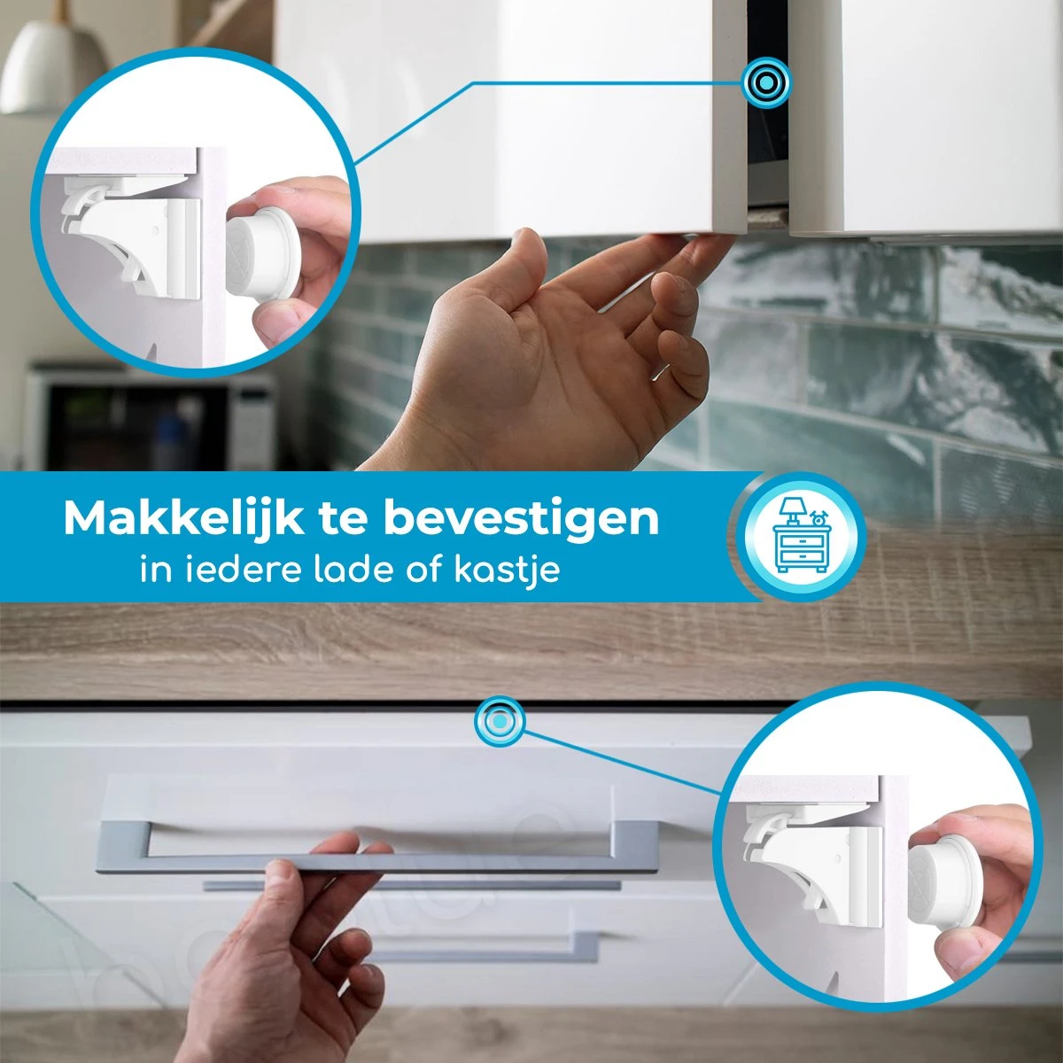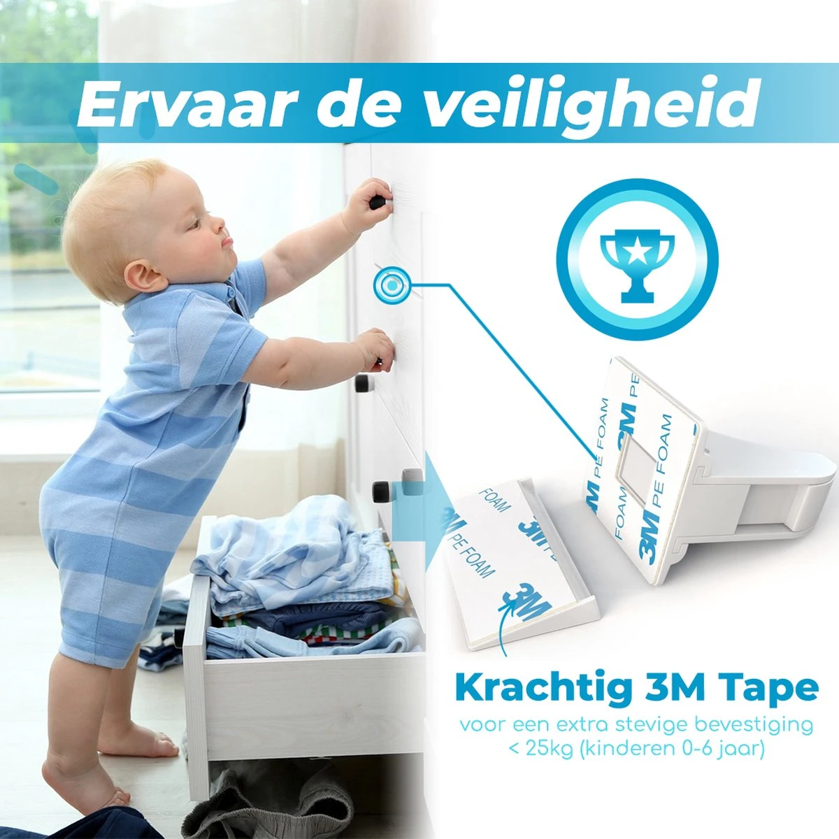 Om je kind zo veilig mogelijk de omgeving te laten ontdekken zijn deze onzichtbare kast- en ladesloten onmisbaar in en rondom uw woning. Ons product is ontwikkeld om te beschermen wat je lief is.