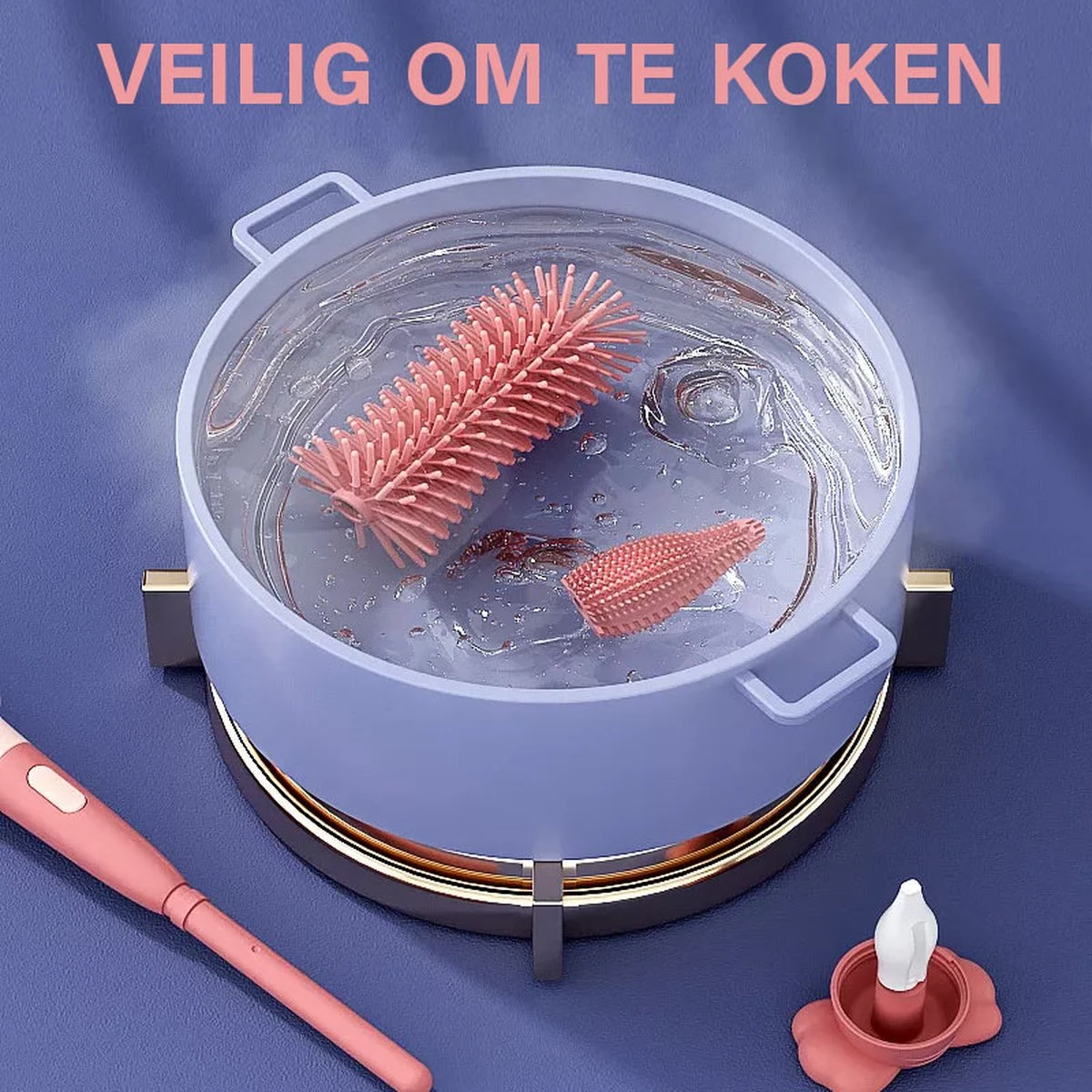 Zorg voor een krasvrije reiniging, waardoor uw babyflessen er altijd netjes blijven uitzien. Wil je tussentijds de borstel eens grondig reinigen, dan kan dat in kokend water.