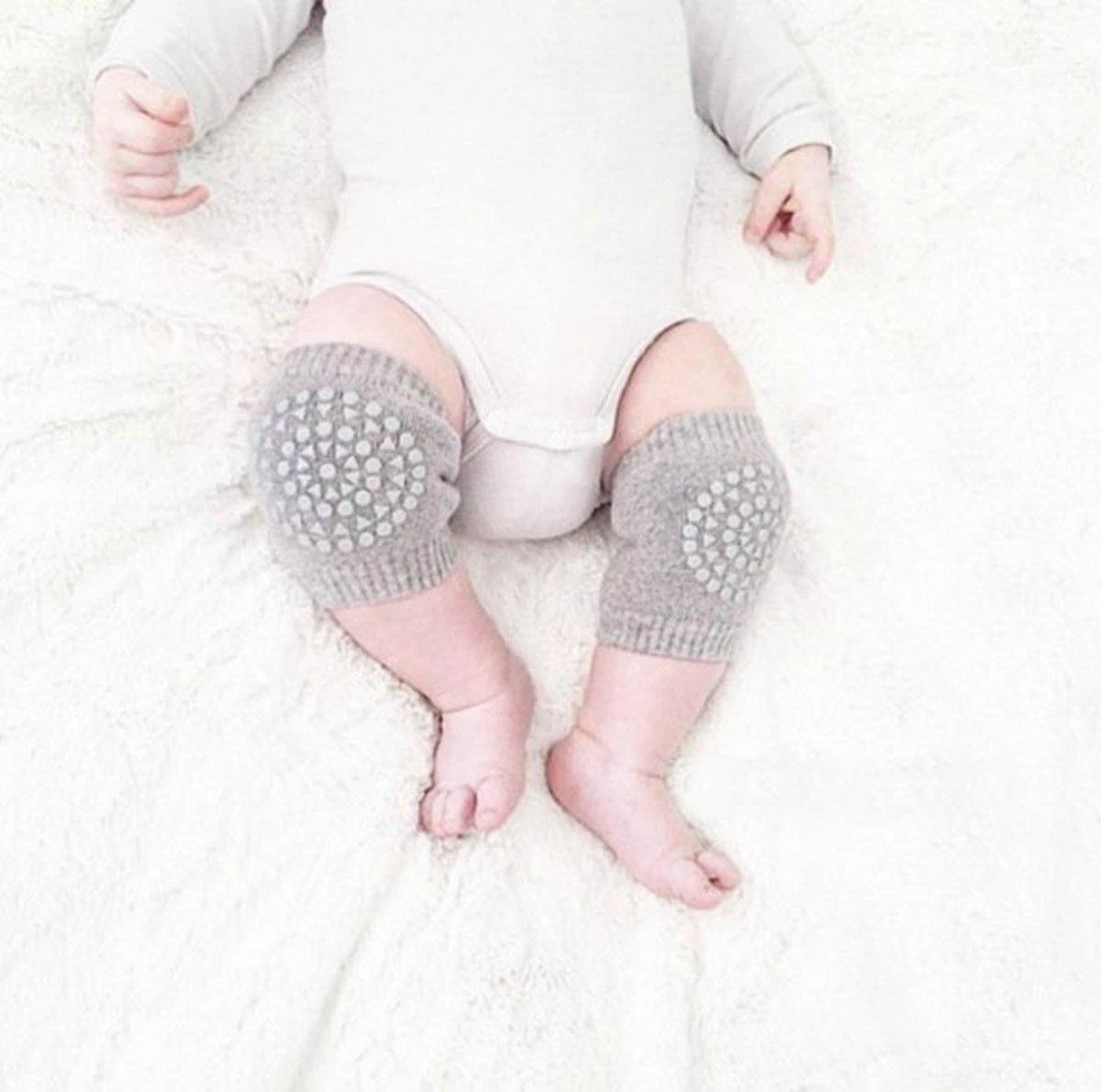 Kruipt uw kindje ook zo graag over de grond, maar met rode knietjes tot gevolg? Deze kniebeschermers kunnen zo over de beentjes of over de kleding worden gedragen.
