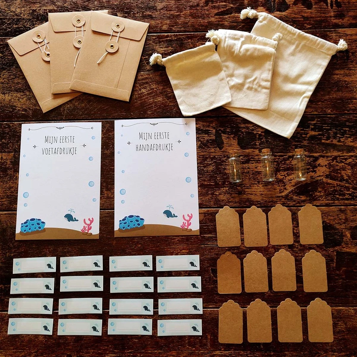 - 1 Voetafdruk kaartje: hierop kun je met verf of inkt een voetafdruk van je kleintje bewaren.