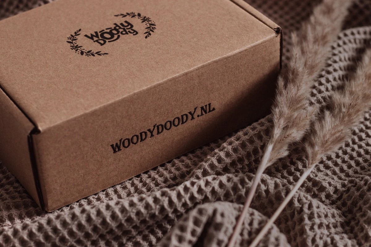 Verwelkom de pasgeboren baby met deze WoodyDoody Houten Kraamcadeau/babygeschenkset van jouw favoriete beestje!