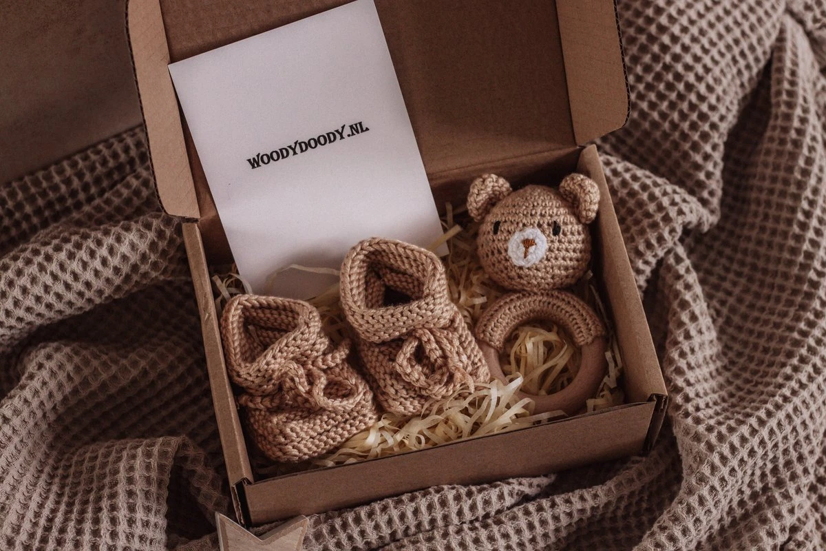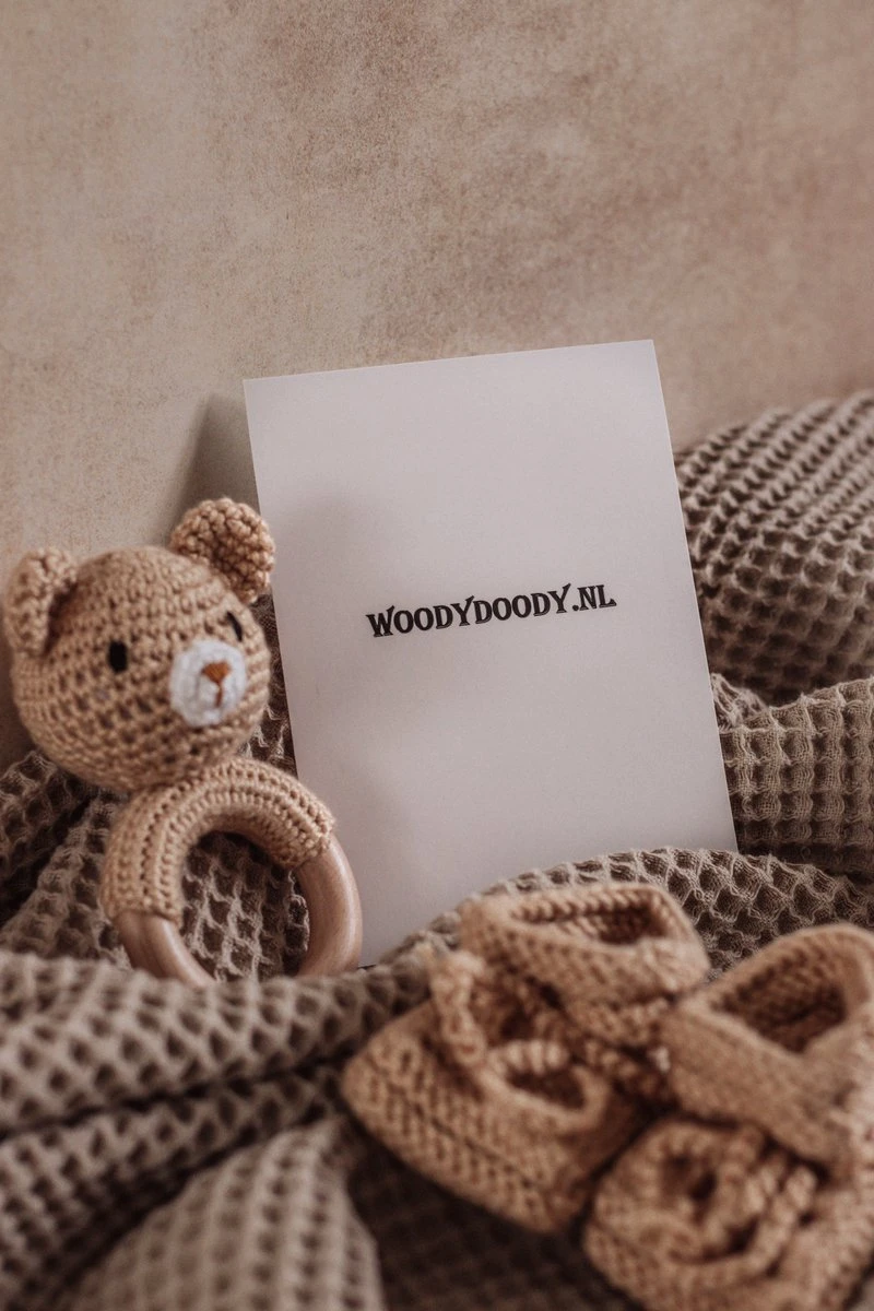 Verwelkom de pasgeboren baby met deze WoodyDoody Houten Kraamcadeau/babygeschenkset van jouw favoriete beestje!