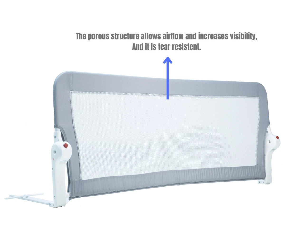 Roestvrij en ademende stof – Het extra zachte gaas op het middelste gedeelte van het oppervlak beschermt uw baby tijdens contact en irriteert de huid niet. Veiligheid voorop – Dit bedhekje maakt het opstaan veilig en comfortabel voor kinderen, terwijl het ook bescherming biedt aan ouderen en zieken. Door middel van de veiligheidsgordel wordt het bedhek aan het ledikant bevestigd. Op deze manier sluit het het risico van vallen en vast komen te zitten tussen het bed en de wandbescherming uit. Stevig materiaal – Zachte katoenen binnenkant vermindert de slagkracht en biedt betere bescherming. Premium stalen buizen zijn robuust en schokbestendig. Eenvoudig in gebruik – U kunt het bedhekje zelfs met één hand openen en sluiten en u kunt uw kind indien nodig gemakkelijk op schoot houden. Gedetailleerde gebruikershandleiding wordt bij het product geleverd. Technische specificaties:
