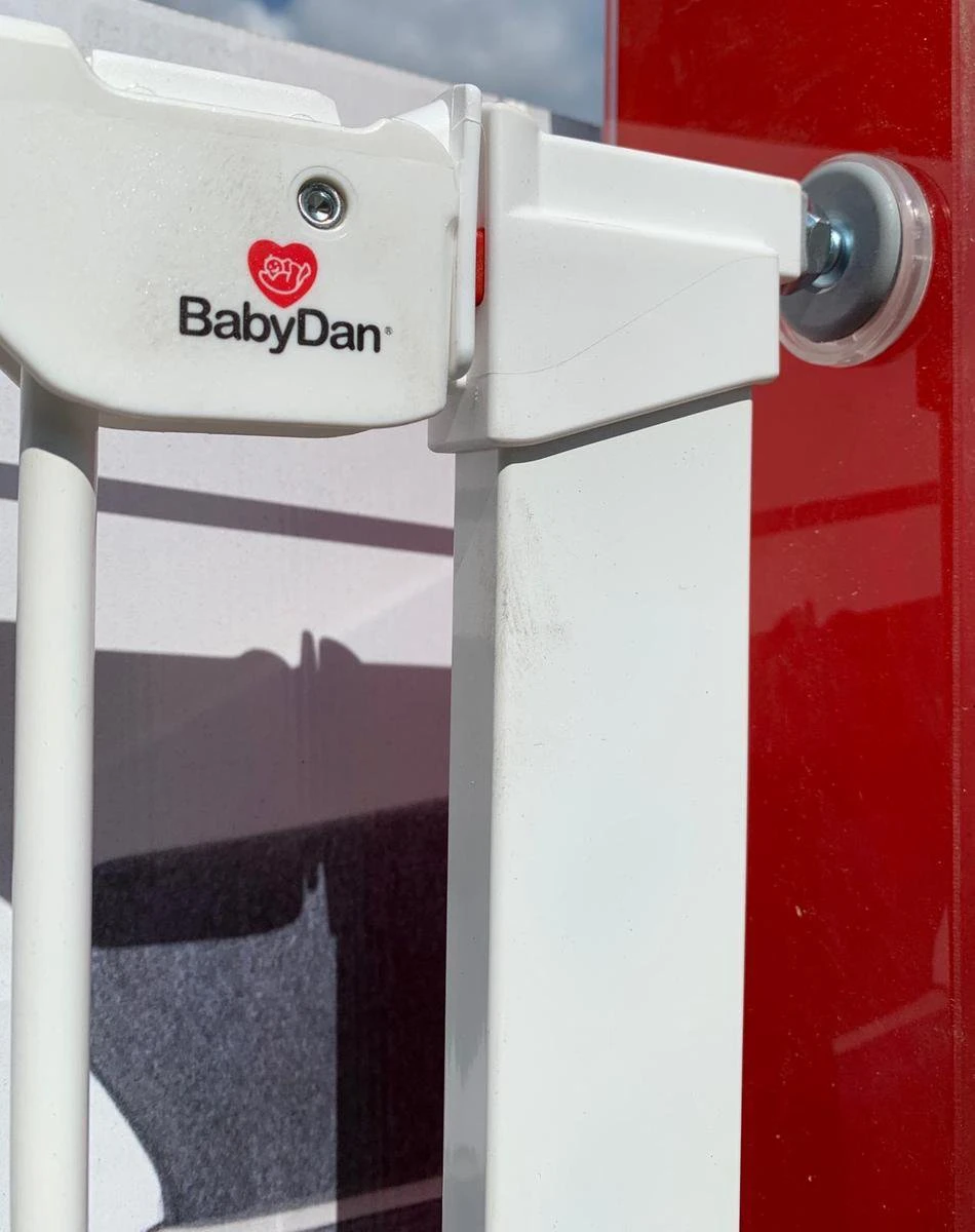 De BabyDan Premier klemhekje wordt bevestigd door middel van een “Power-Frame”