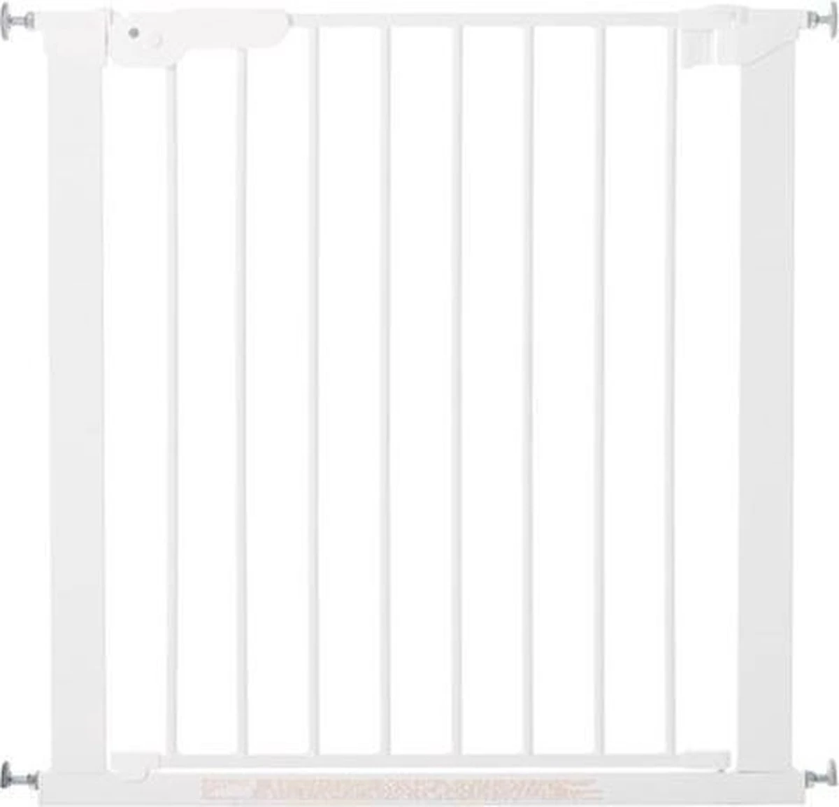 Extra uitbreidingen zijn apart verkrijgbaar, uitbreidingen worden bij sommige modellen meegeleverd. Waarschuwing: Een onjuiste montage kan gevaarlijk zijn. Gebruik het veiligheidshekje niet als er onderdelen ontbreken of beschadigd zijn. Waarschuwing: Het veiligheidshekje is niet geschikt voor raamopeningen. Waarschuwing: Gebruik een veiligheidshekje nooit zonder muurdopjes “Wall Cups “. Let op het gevaar van kinderen die het veiligheidshekje zelf gebruiken of eroverheen klimmen. Klim nooit over het hekje heen en laat kinderen er nooit aan hangen of mee spelen. Waarschuwing: Gebruik het hekje nooit zonder muurdopjes. Als het hekje volgens de gebruiksaanwijzing is gemonteerd, d.w.z. tussen 2 schone en stabiele oppervlakken, voldoet het aan EN1930:2011. Plaats het hekje altijd rechtstreeks op de vloer / trap. Als het veiligheidshekje boven aan de trap wordt geplaatst, mag het niet onder de hoogste trede worden gemonteerd. Als het veiligheidshekje onder aan de trap wordt geplaatst, moet het voor de onderste trede worden gemonteerd. Dit product kan niet voorkomen dat er ongelukken gebeuren. Laat uw kind nooit zonder toezicht achter. Dit hekje is ontworpen voor kinderen tot 24 maanden. Stem deze richtlijn echter af op de ontwikkeling van uw kind, omdat de vaardigheden per leeftijd kunnen verschillen. Wanneer na montage een rode indicator zichtbaar is, mag het hek niet gebruikt worden in de betreffende opening, aangezien dan niet bestand is tegen de vereiste minimale druk. Bij montage op baksteen, gips of andere ongelijkmatige oppervlakken kan het nodig zijn een glad oppervlak in de vorm van bijv. een houten lat aan de wand te bevestigen. Als het hekje beschadigd is of als het betrokken is geweest bij een ongeluk, mag het niet opnieuw worden gebruikt. Gebruik voor dit product uitsluitend originele reserve onderdelen. Het veiligheidshekje heeft een handmatig sluitsysteem. Controleer altijd of het veiligheidshekje op de juiste manier is gesloten en vergrendeld. Het veiligheidshekje moet regelmatig worden gecontroleerd om er zeker van te zijn dat het veilig is en functioneert in overeenstemming met de gebruiksaanwijzing. Dit veiligheidshekje is gemaakt van metaal. Gebruik alleen warm zeepsop of een vochtige doek om het hekje schoon te maken. Gebruik geen schuur of bleekmiddel om dit hekje schoon te maken. Muurdopjes, plaats de zelfklevende kussentjes tussen de muurdopjes en de muur / kozijn of schroef de muurdopjes in overeenstemming met de markeringen vast. Belangrijk: bij het gebruik van zelfklevende kussentjes dient het oppervlak te worden gereinigd met alcohol voordat u de kussentjes op het oppervlak bevestigd. Reinig het oppervlak niet met een olie of zeepachtig product. Zelfklevende kussentjes kunnen alleen worden gebruikt op gladde oppervlakken zoals geverfd, gelakt, of geschuurd hout of op gladde metalen oppervlakken. Zelfklevende kussentjes kunnen niet worden gebruikt op glas, bakstenen, tapijt, behang of ander losse oppervlakken / materialen. Belangrijk: De bijgeleverde schroeven zijn uitsluitend geschikt voor gebruik in hout. Bij bevestiging in andere materialen dient u de juiste schroeven en muurpluggen te gebruiken. ( diameter 4 mm).