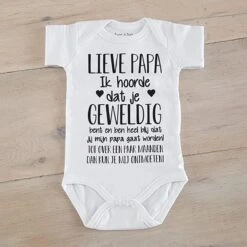 Merkloos Baby – Romper – Slapen, Eten, Papa Pesten! – Maat: 68 – Korte Mouwen – Kleur: Wit – 1 Stuks
