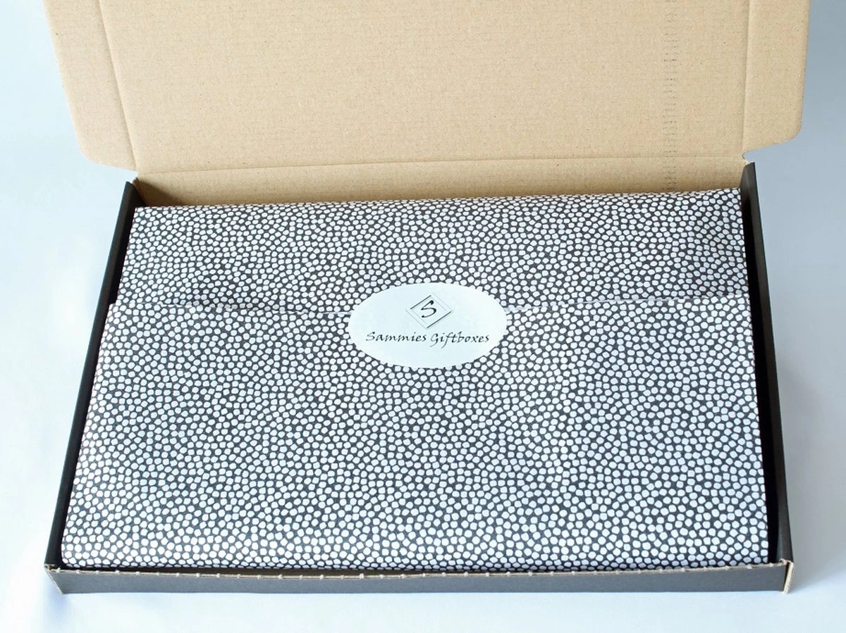 Mooi verpakt in een brievenbus verzenddoos dus kan zo als cadeau verzonden worden.