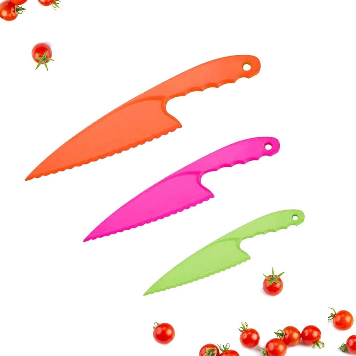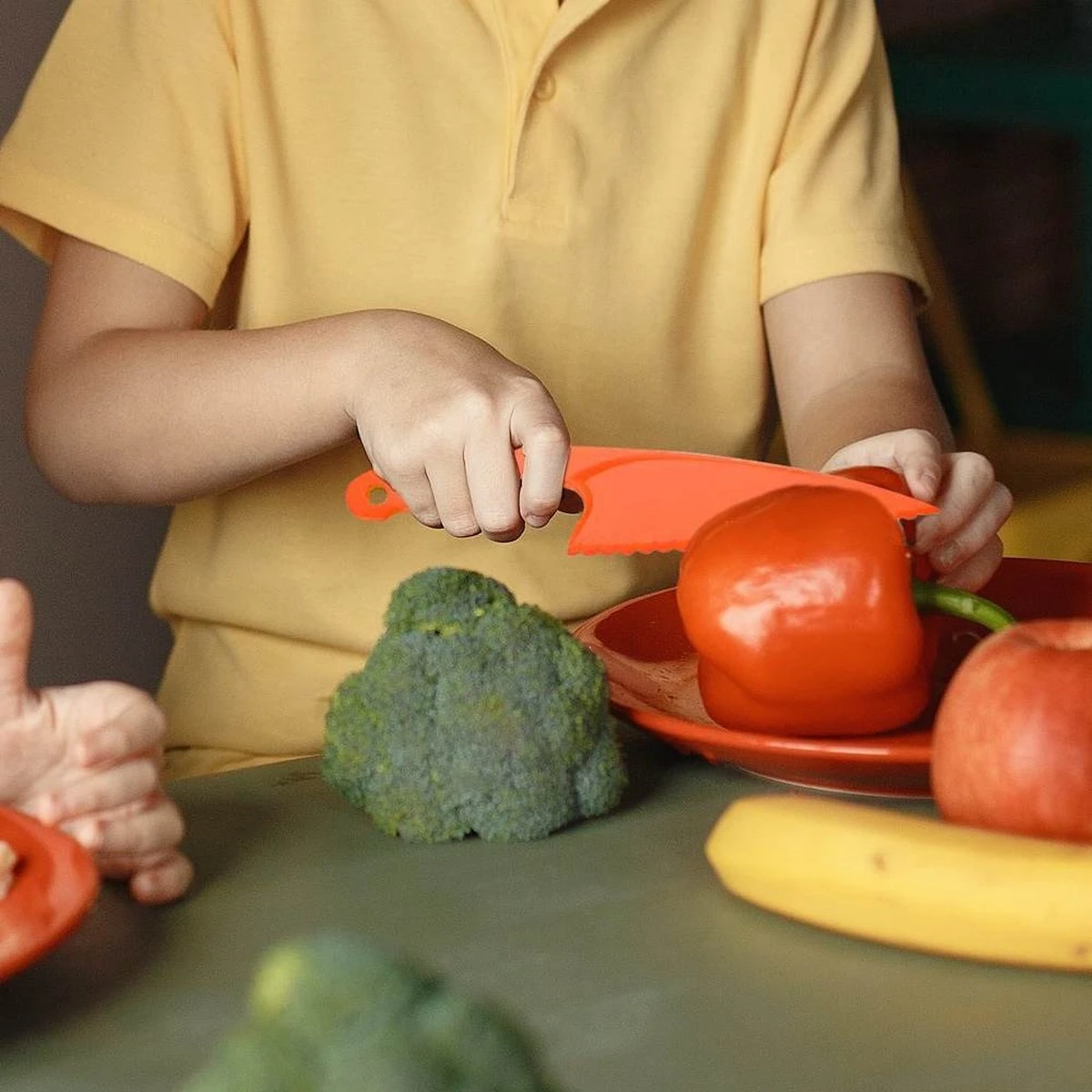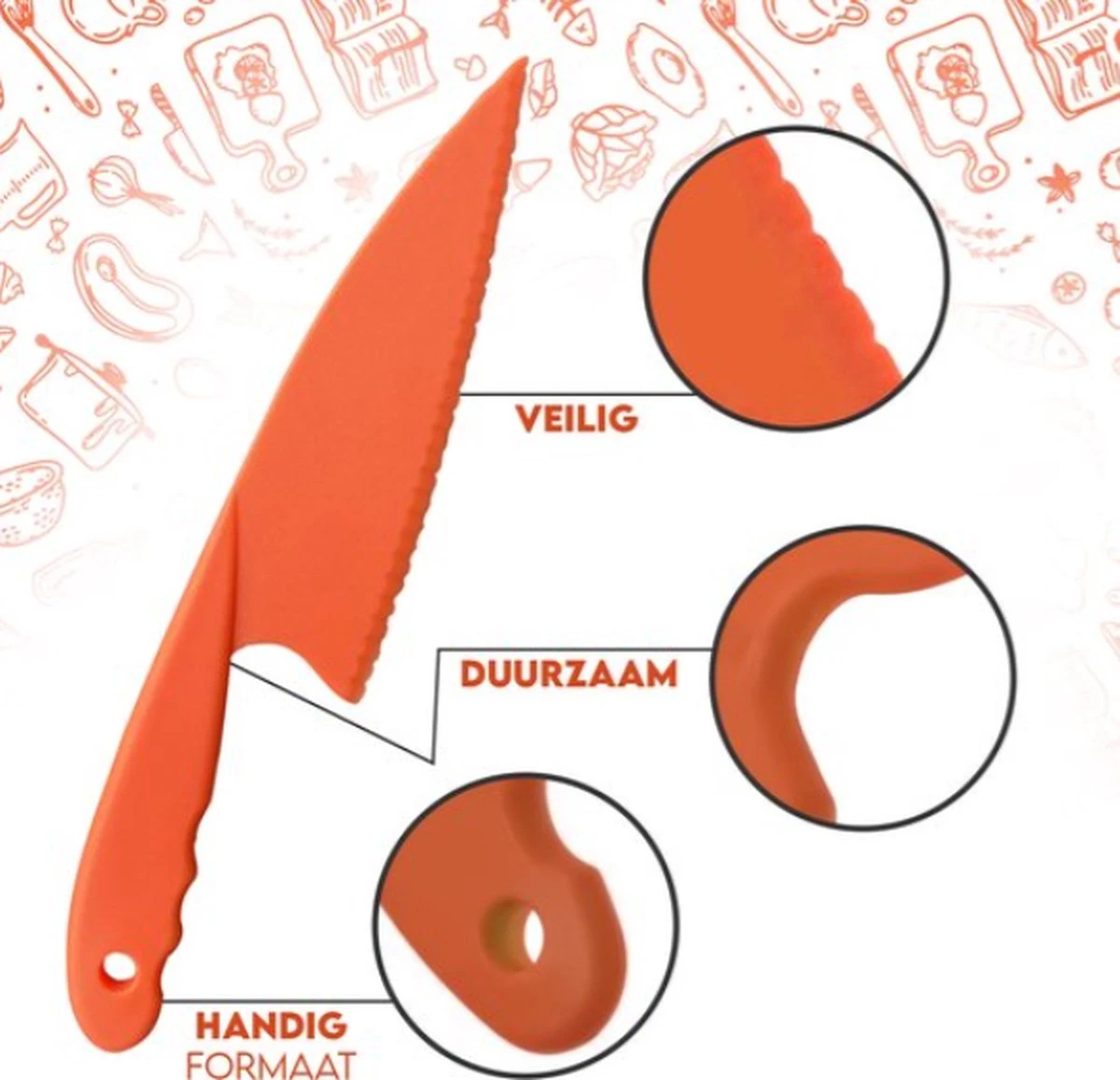 Kinderen kunnen meehelpen in de keuken! Het is altijd leuk als je kids je kunnen helpen met koken. Daarentegen moet dit wel veilig gebeuren. Deze kindermessenset helpt daarbij! De set bestaat uit 6 kindermessen en zijn gemaakt van kunststof. De randen zijn optimaal afgewerkt om een veilige snij beleving te garanderen. Voor extra veiligheid zijn er zelfs handschoenen aanwezig.