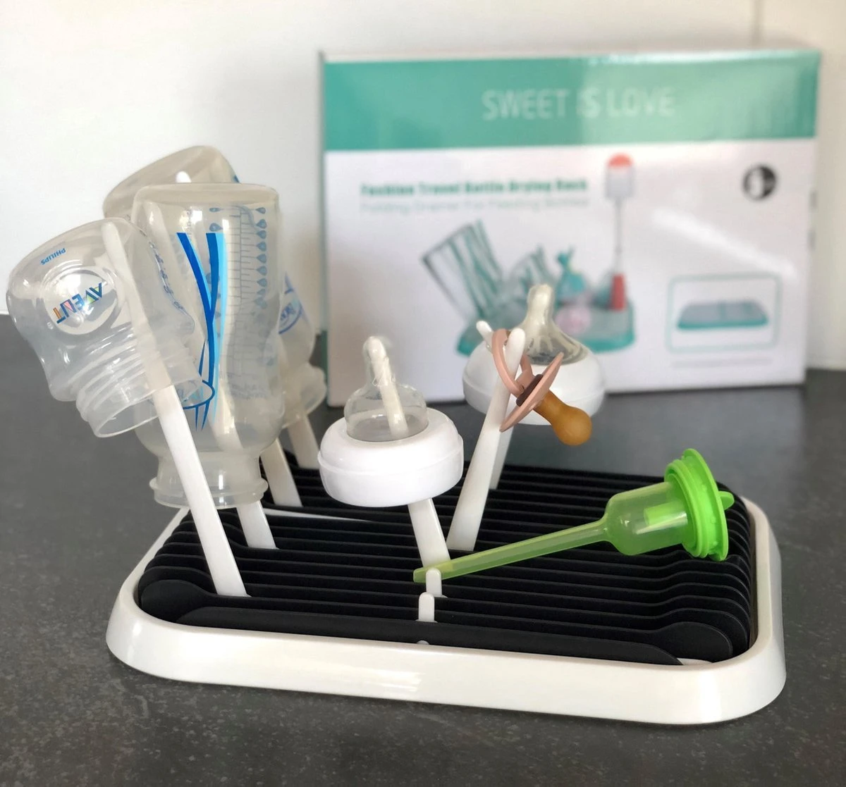 Dankzij de compacte afmetingen past het babyflessen afdruiprek gemakkelijk op elk aanrecht of tafelblad. Het is een onmisbaar hulpmiddel voor ouders die snel en efficiënt hun babyflessen willen drogen, zonder gedoe en zonder dat het veel ruimte in beslag neemt.