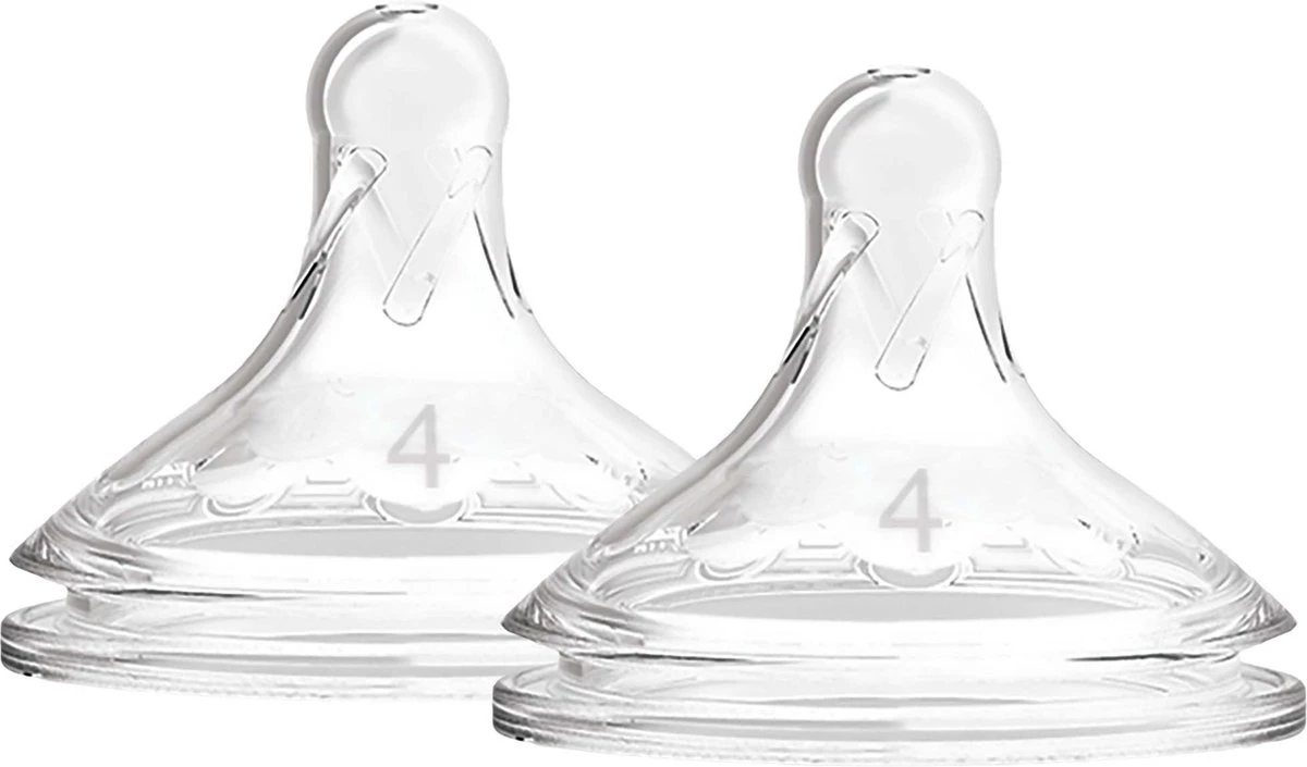 Dr. Browns Flesspeen Brede Hals Fase 4. Deze speen is geschikt voor kindjes vanaf ongeveer 9 maanden. De speen is bedoeld voor pap en dikkere voeding. Bijvoorbeeld voeding op basis van johannespitmeel. Ook geschikt voor kindjes die snel of gulzig eten.De spenen van Dr. Browns zijn gemaakt van zeer zachte, klinisch geteste siliconen. Door de speciale vorm en de zeer zachte textuur ligt de speen perfect in je babys mond. Er zijn verschillende flesspenen van Dr. Browns te verkrijgen. Het verschil zit in de snelheid waarmee de voeding doorstroomt en de leeftijd van je kleintje. Vervang spenen elke zes weken of eerder als er tekenen van slijtage zijn. Alleen geschikt voor Dr. Browns Options+ Anti-colic brede halsfles.