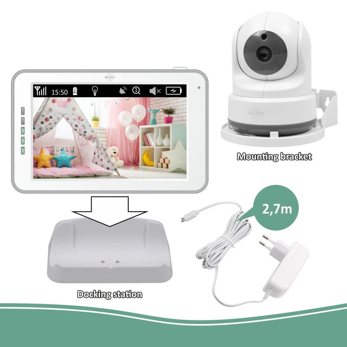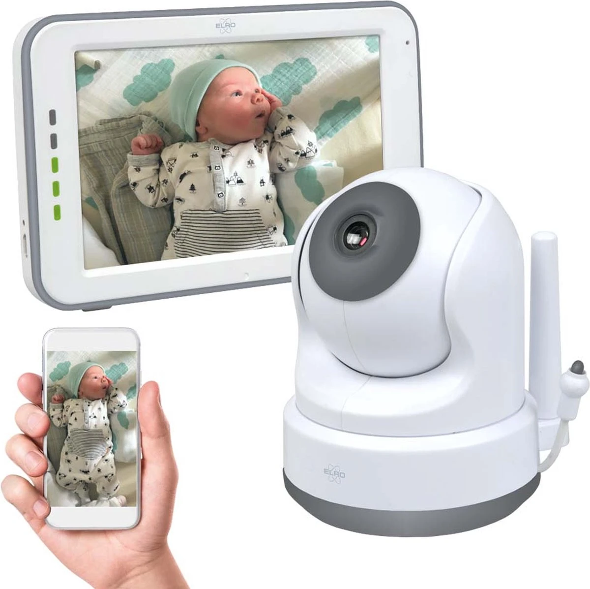 - Bekijk de beelden op het 12,7cm touchscreen of via de ELRO Babycam App