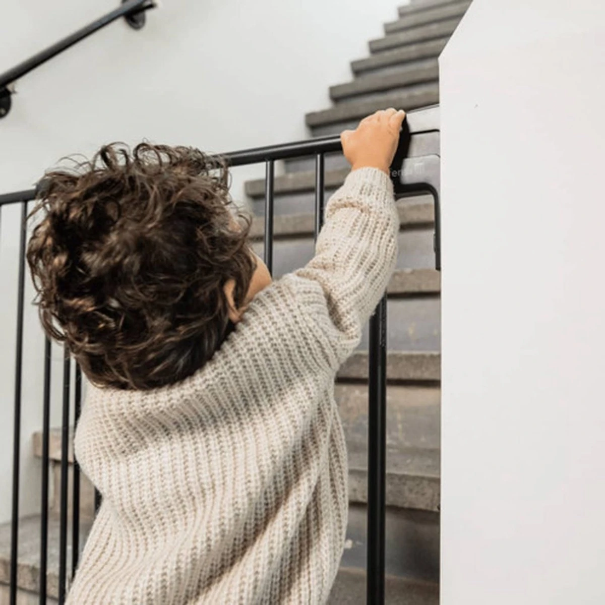 Veiligheid staat voorop. Het SafetyDoor traphek is extra hoog, wat zorgt voor extra veiligheid voor de wat oudere kindjes, en is verstelbaar in breedte van 75,5 tot 116 cm. Het traphek is eenvoudig met 1 hand te openen en is voorzien van een indicator die aangeeft of het hekje goed gesloten is.