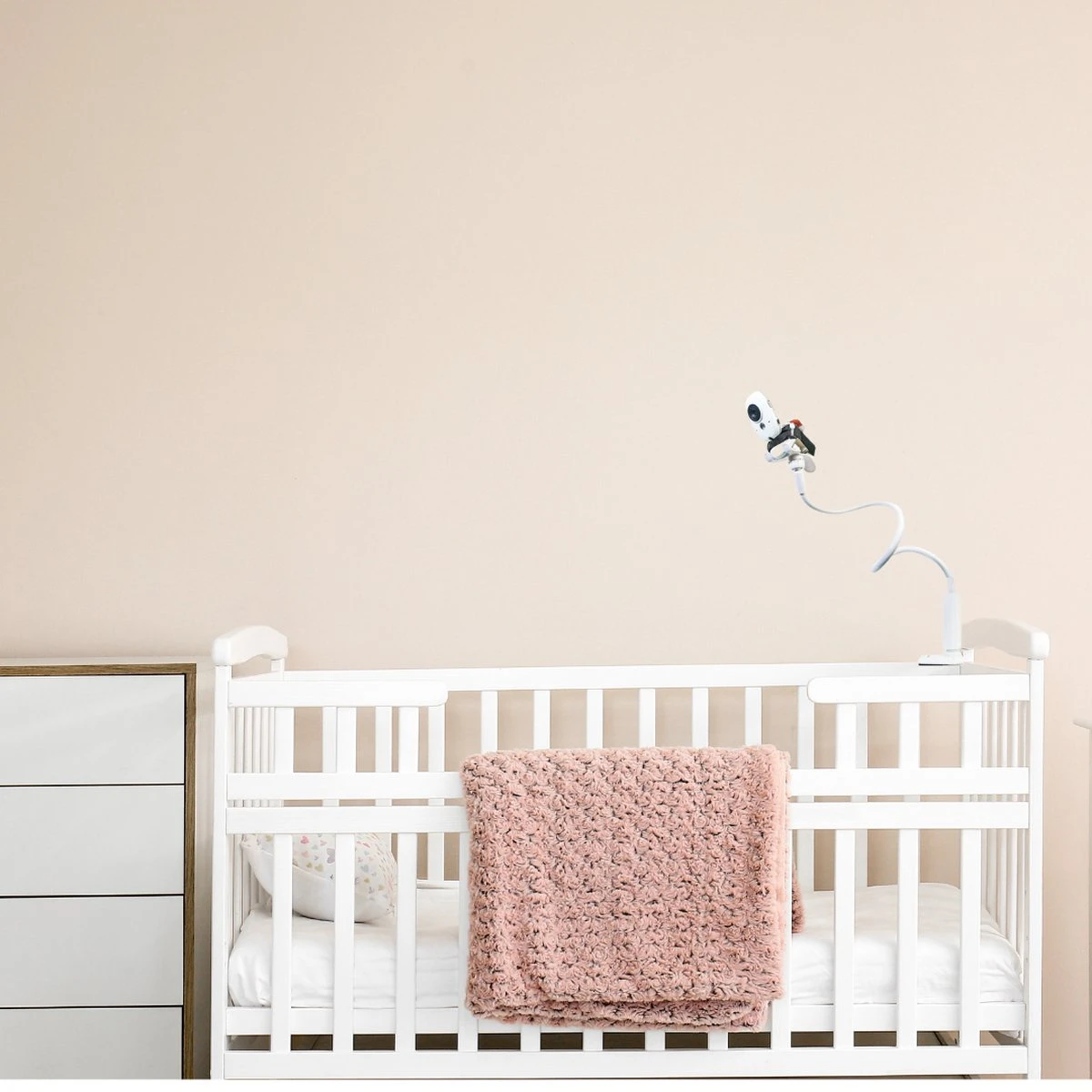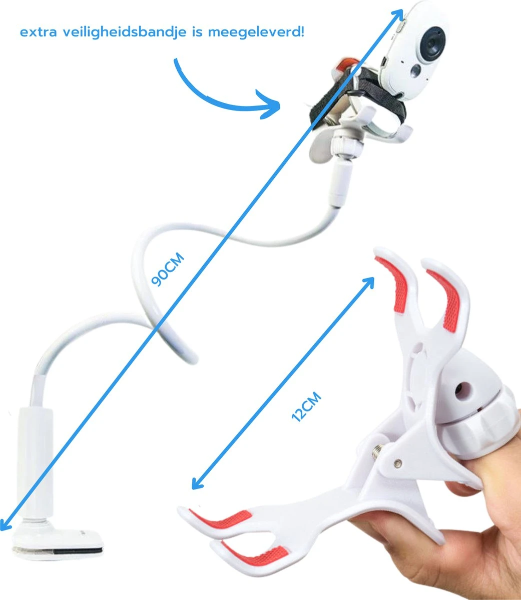 Om de zekerheid te hebben van het perfecte zicht op je baby of peuter, hebben wij een universele babyfoonhouder ontwikkeld. Een flexibele stevige arm waar je je baby monitor in vast klemt en die je gemakkelijk aan bed, commode, box en kast bevestigd. Deze baby monitor buig je vervolgens flexibel in de gewenste ideale stand en het kijken kan beginnen!
