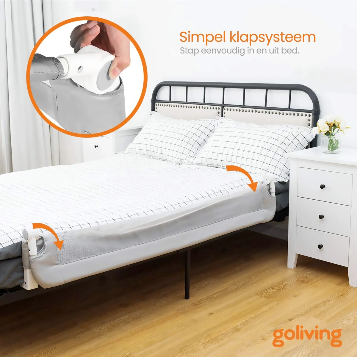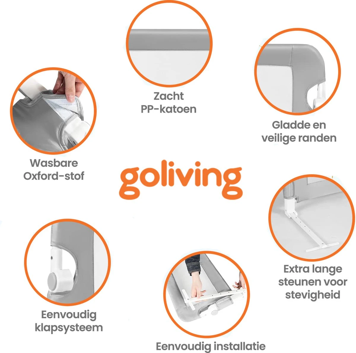 Vergrendelingssysteem tegen onbedoeld uitklappen. Het garandeert dat de barrière niet automatisch inklapt wanneer het kind erop drukt. De barrière elimineert het risico op vallen volledig. Ouders kunnen gerust zijn, want Goliving biedt bescherming voor hun kinderen. Dankzij de mogelijkheid om de reling 180 graden op te vouwen, hoef je hem niet elke keer uit elkaar te halen – gewoon opvouwen en klaar.