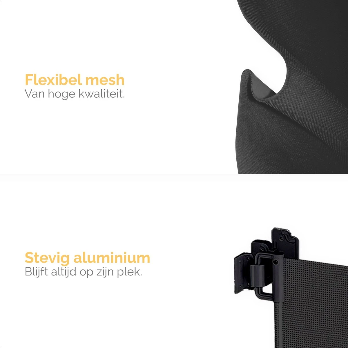 We weten allemaal dat jonge kinderen echte avonturiers zijn. De hele wereld moet ontdekt worden – en dan wil de kleine nog wel eens aan het klimmen en klauteren slaan. Het stevige mesh design zorgt echter dat je baby geen houvast heeft om tegen het hekje op te klimmen. En dat scheelt een hoop zorgen! Ook is de stevige constructie van het hekje bestand tegen enthousiaste viervoeters die er tegenaan rennen.