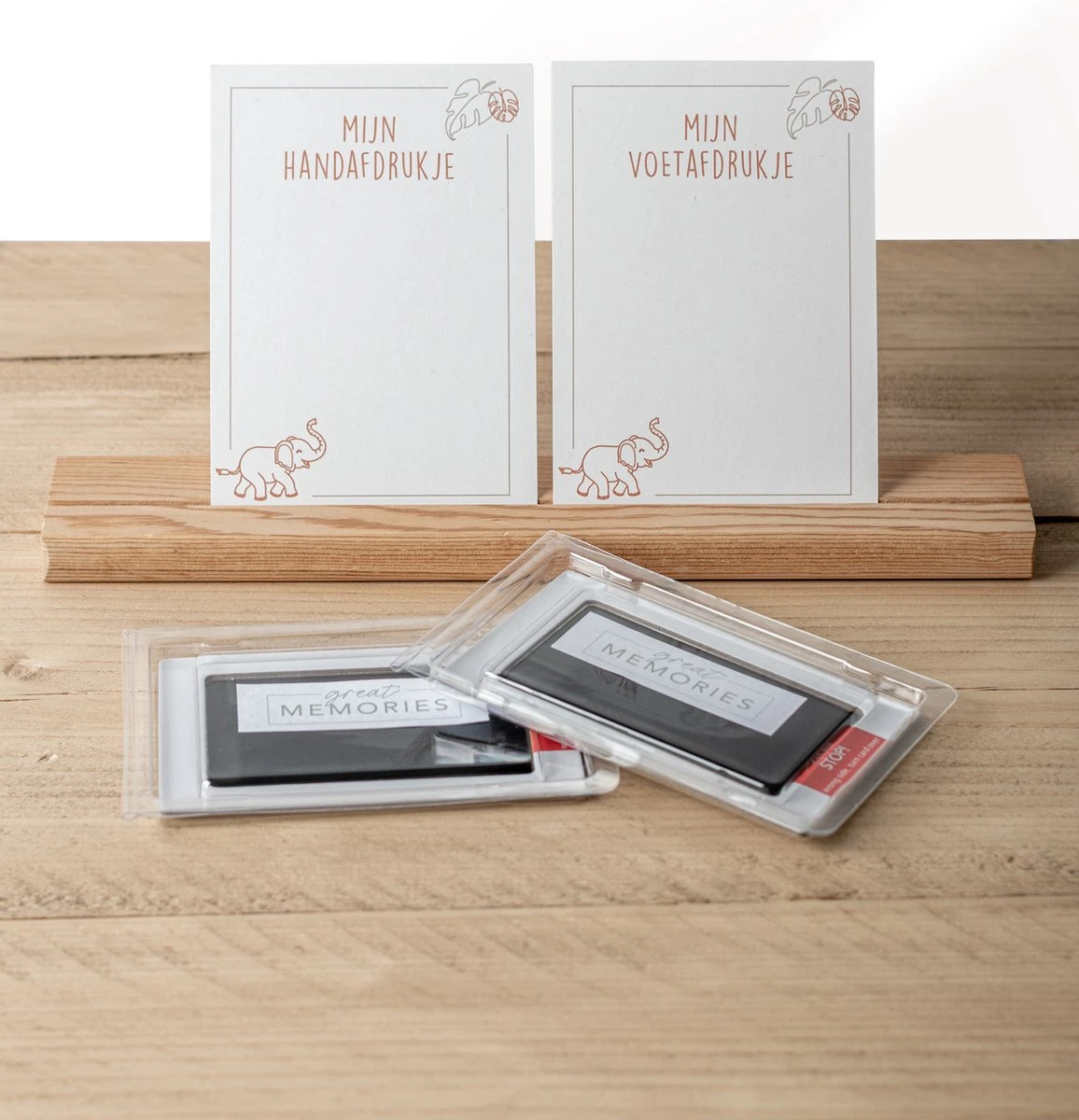 Inktafdruksetjes (2 stuks) met bijpassende kaartjes voor het hand- en voetafdrukje
