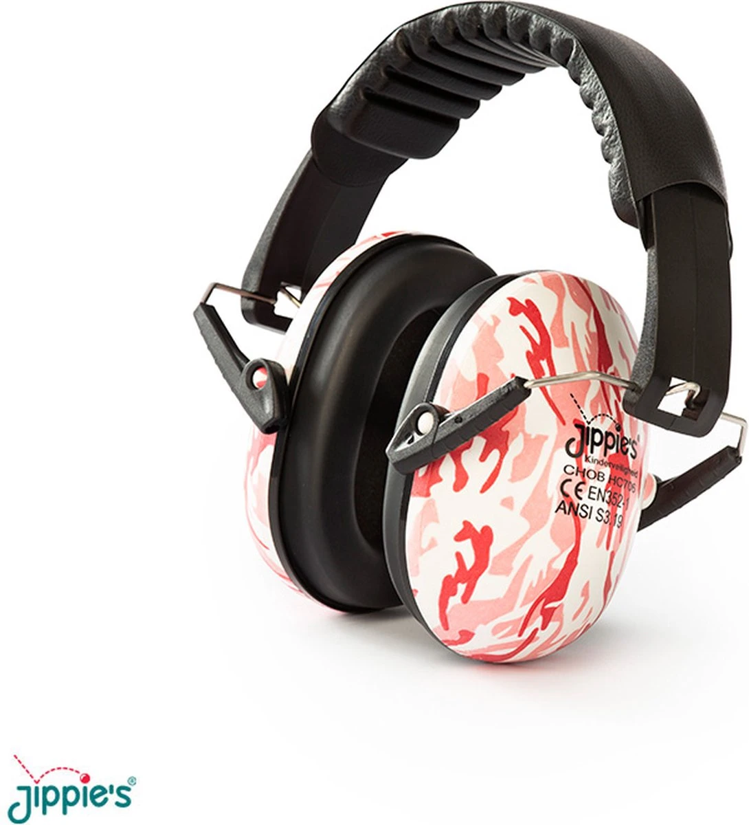 De Jippie’s gehoorbeschermer is leverbaar in groen, blauw, roze, wit, zwart, panter, camouflage groen en camouflage roze.