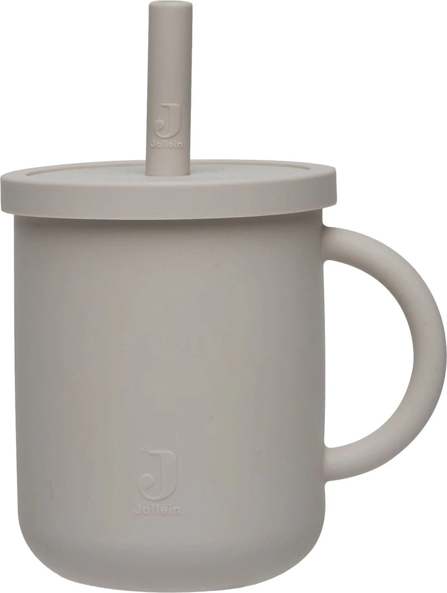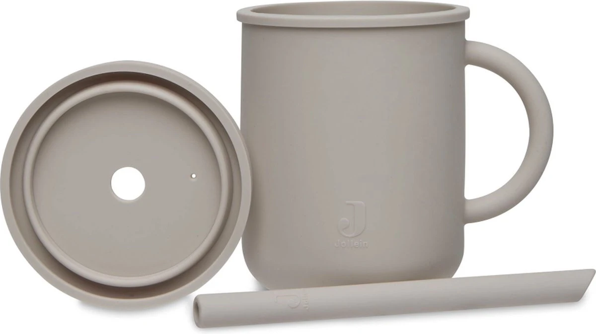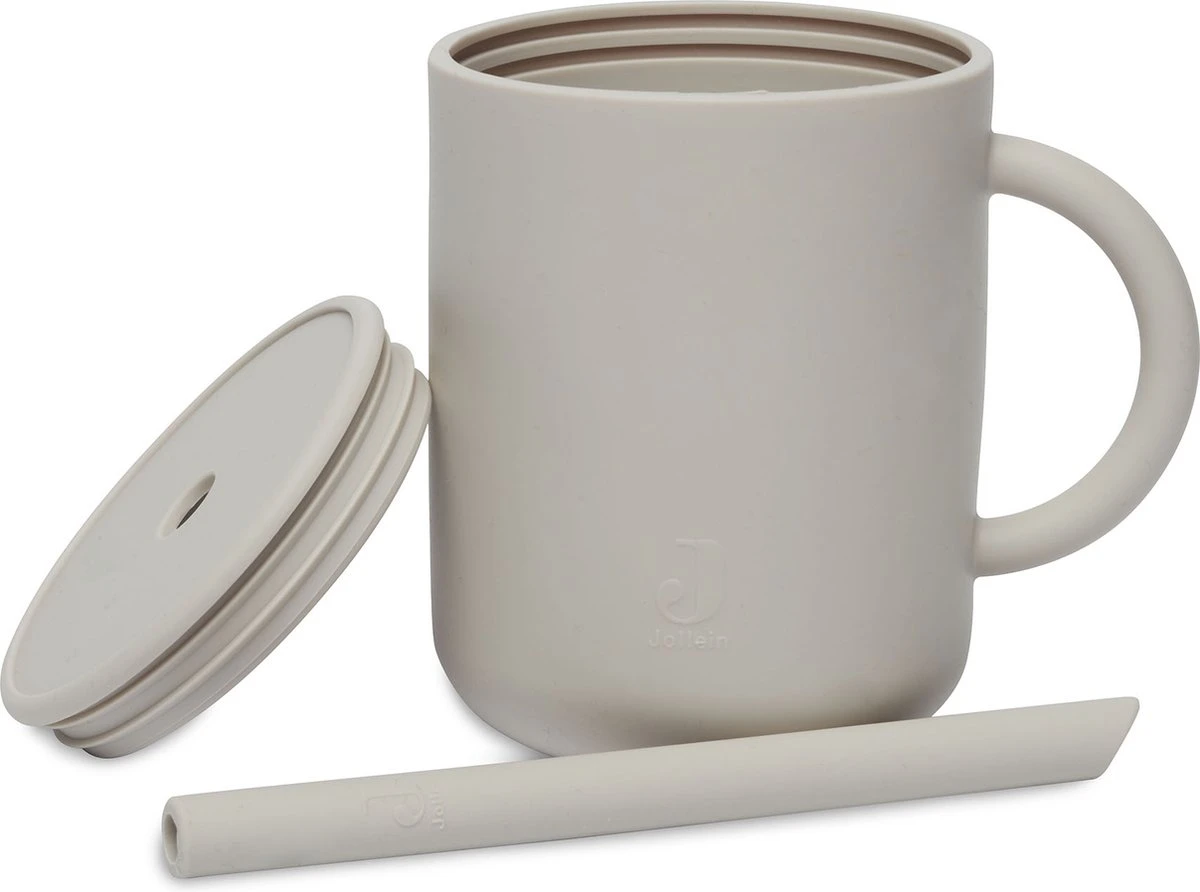 Deze leuke beker heeft een handig oor om hem aan vast te houden, een deksel die je er gemakkelijk op en af draait na gebruik en een rietje om knoeien tegen te gaan.