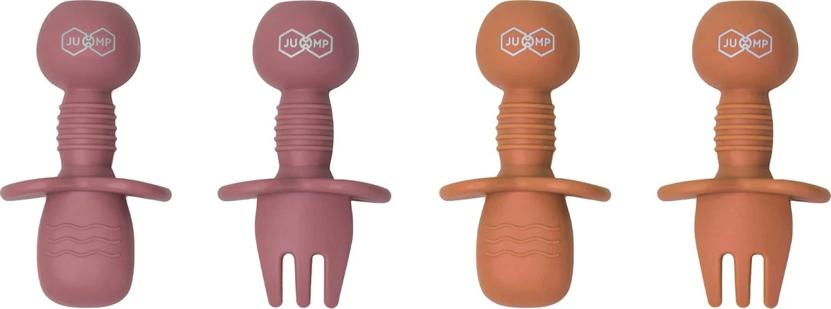 1x een oranje JU&MP anti-stik babylepeltje en vorkje