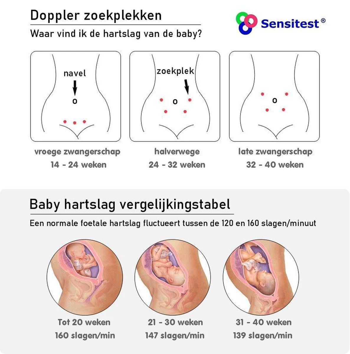 Ben je zwanger? Dan kun je nu eenvoudig thuis luisteren naar het hartje van je kindje in je buik met de nieuwe Baby Doppler van Angelsound. Het is een geweldige ervaring om thuis elk moment van de dag te kunnen luisteren naar het kloppende hartje van het kindje in je buik. Je plaatst het apparaatje op je buik en via de meegeleverde oordopjes kun je luisteren naar het hartje van je baby. Het apparaat is ook geschikt om naar je eigen hart te luisteren. Je kunt de Baby Doppler gebruiken vanaf ongeveer 16 weken zwangerschap. Je telt daarbij vanaf de eerste dag van je laatste menstruatie. Deze hartmonitor is onschadelijk voor je kindje omdat het werkt met geluidsgolven. Meegeleverd wordt een batterij, oordopjes, usb aansluiting voor pc of tablet, Nederlandse handleiding en 1 gratis tubes Sensitest echo gel ter waarde van 7.49 euro. Het apparaat is klaar voor gebruik. Omdat het pakje niet door de brievenbus past, wordt dit product door een koerier aan huis bezorgd. Tijdelijk extra voordelig.