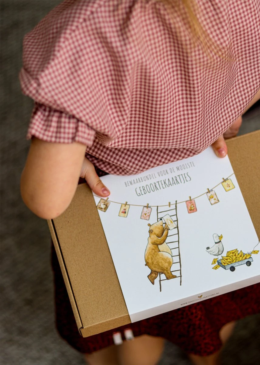 Herken jij het ook? Alle geboortekaartjes aan een slinger in de woonkamer? Maar hoe ga je deze waardevolle kaartjes bewaren? Met onze geboortekaartjes bewaarbundel bundel je alle kaartjes netjes en compact.