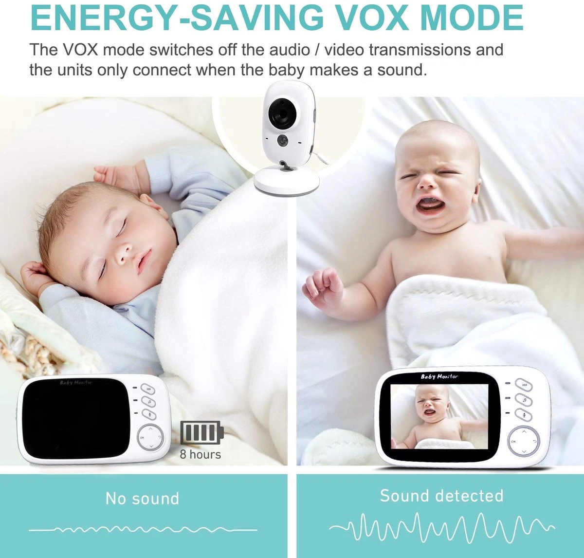 - Energiebesparende modus voor spraakbesturing: door de stem van de baby te voelen, zal het scherm op tijd worden verlicht en zal het duidelijk worden overgedragen aan de ouders, zodat ze de dynamiek van de baby op elk moment en overal kunnen beheersen.