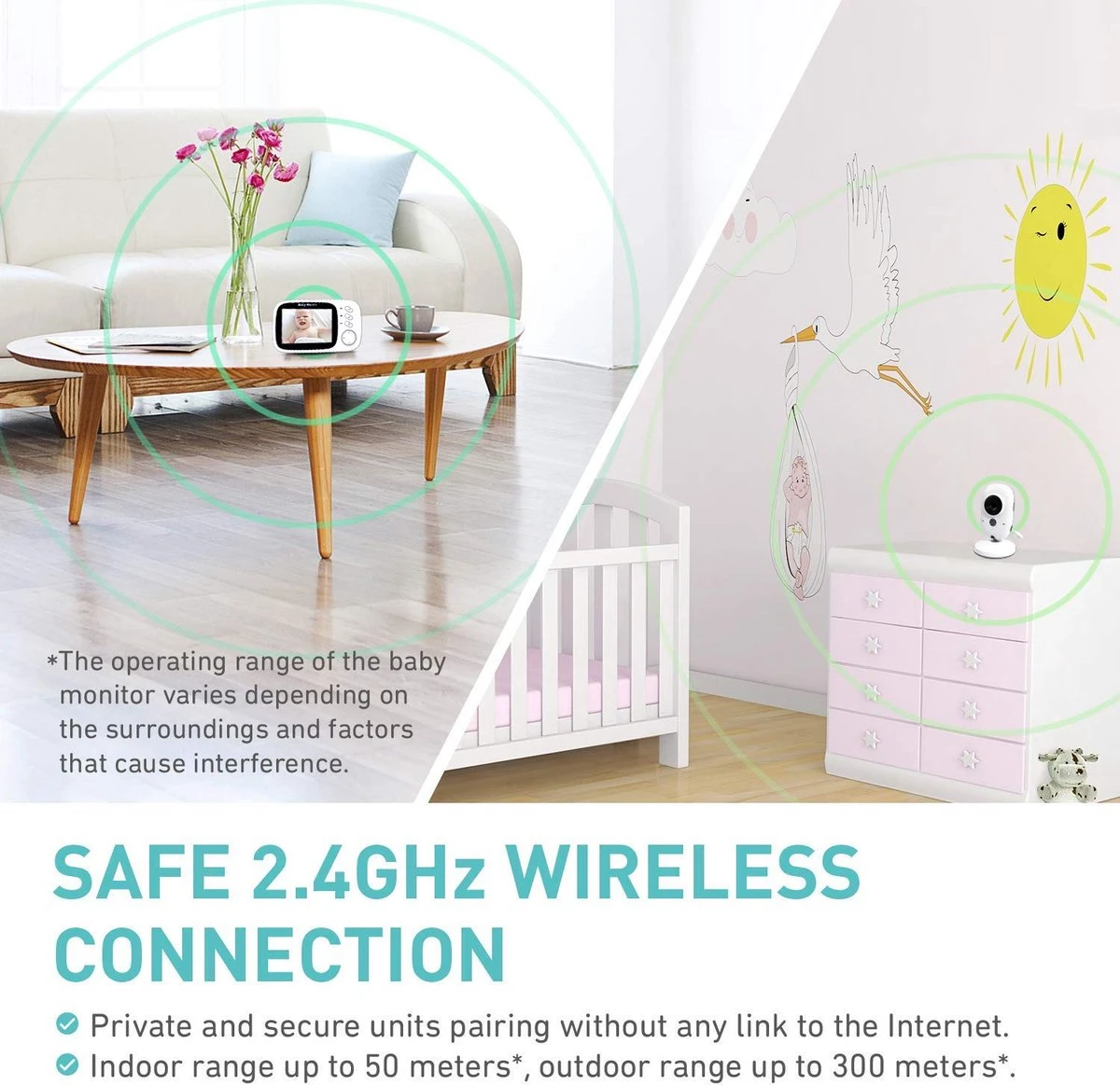 - Onder de beste omstandigheden kan het 260m (open ruimte) bereiken, zonder zich zorgen te maken over het verlies van contact met de baby De binnenverbinding is soepeler en de signaalversleuteling zorgt voor 100% veilige en storingsvrije verbinding