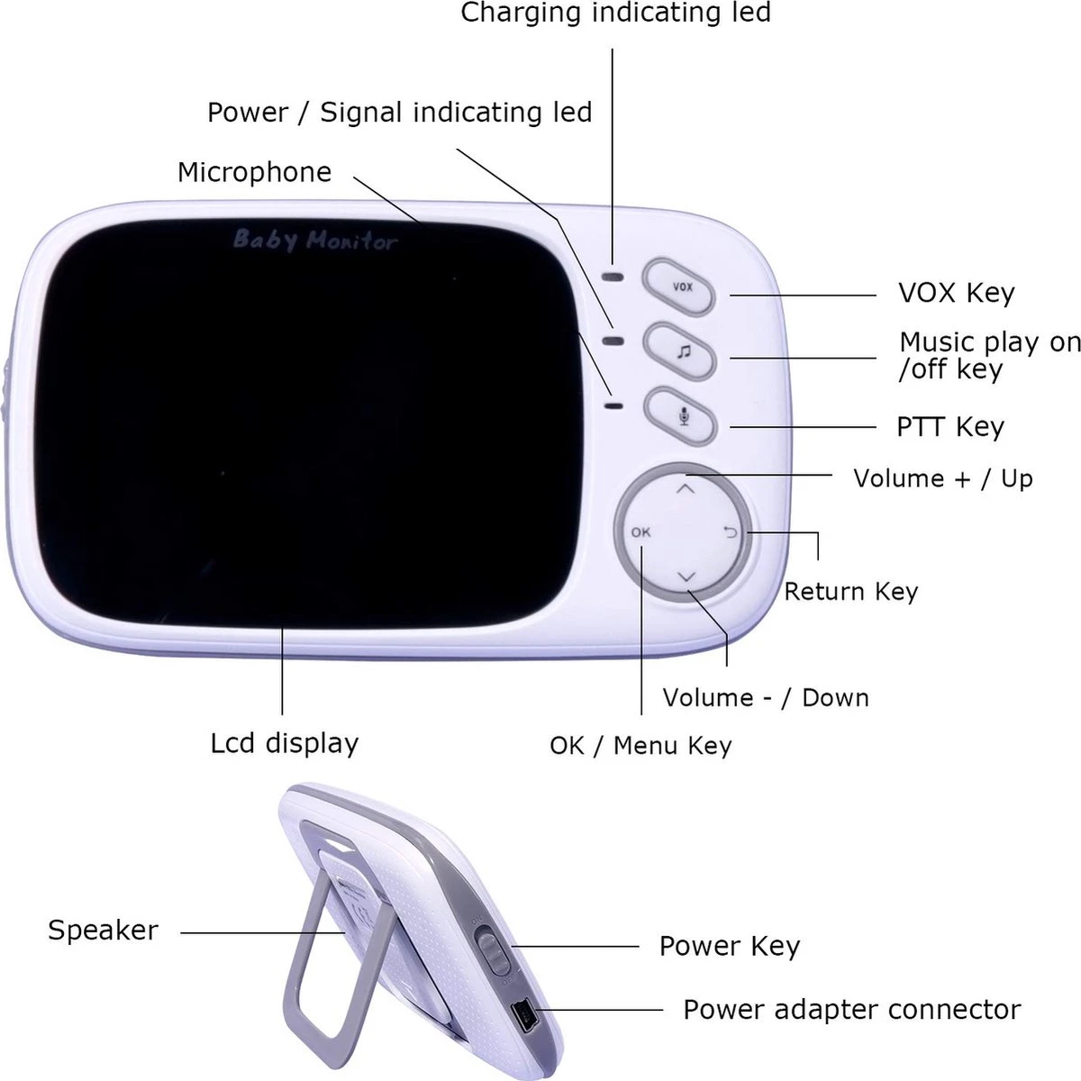 - De tweerichtingsoproepfunctie kan met de baby praten via de babyfoon, de stemming van de baby kalmeren met uw eigen stem en het is gemakkelijk om het volume en de gevoeligheid aan te passen.