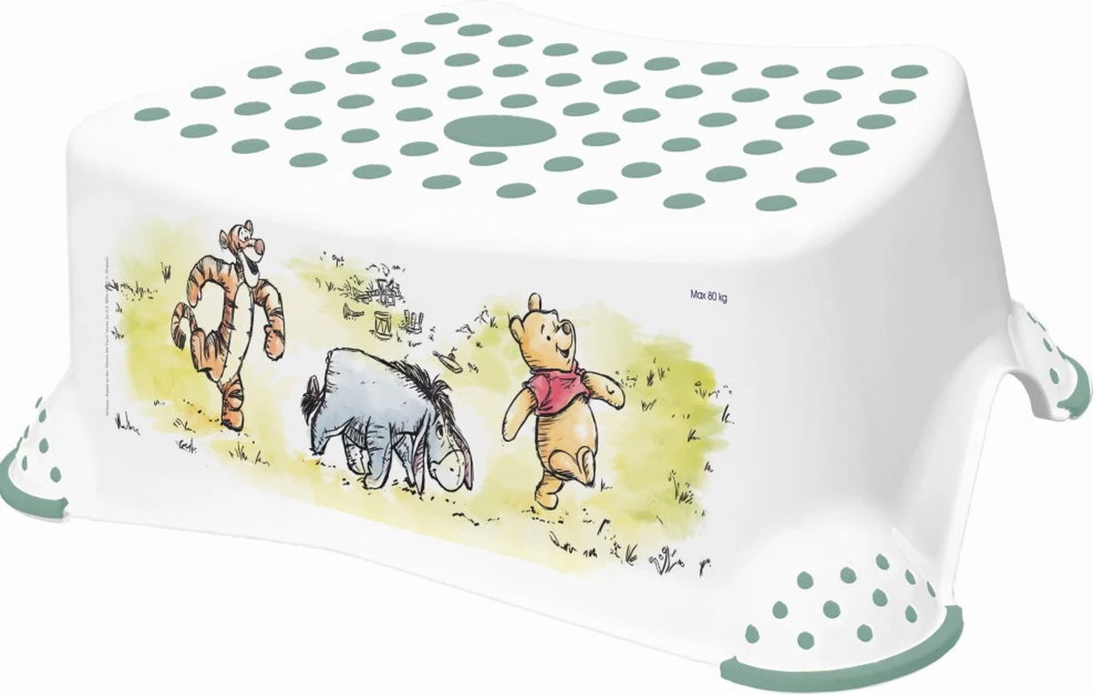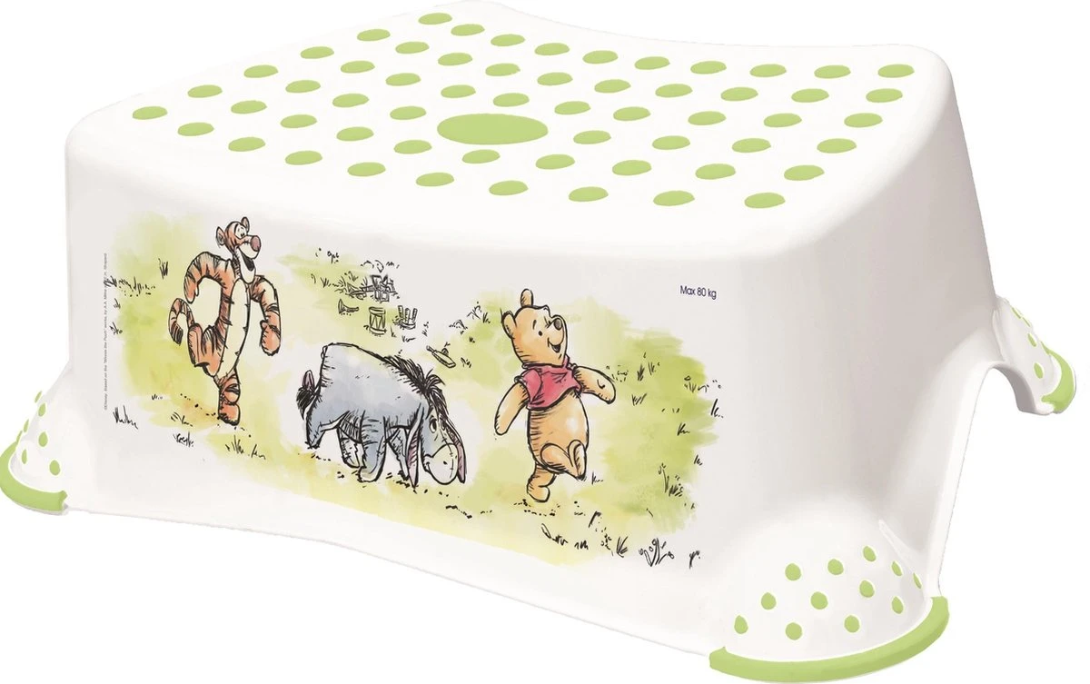 Opstapje van Winnie the Pooh met een leuke afbeelding. Perfect voor kinderen om het toilet te leren gebruiken. Dankzij de anti slip rubbers in de voetjes staat het opstapje zeer stevig en kun je je kind veilig helpen om bij het toilet, wasbak tafels etc te komen. De nieuwe technologie van overprint (IML) voorkomt dat de afbeelding vervaagt of loslaat.
