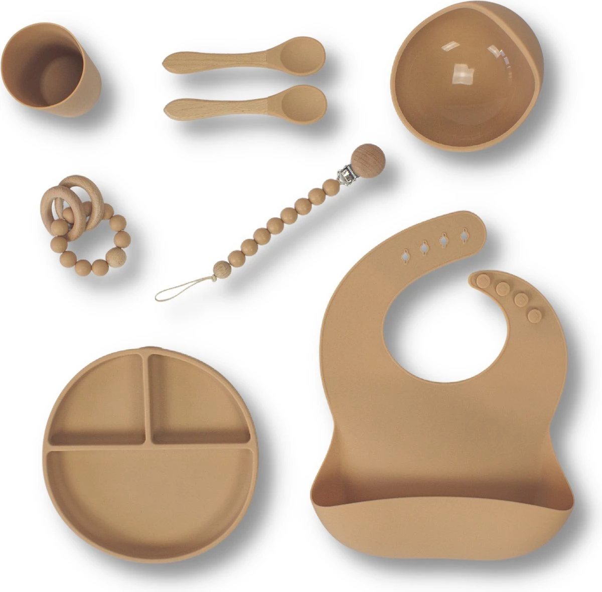 Onze silicone bord & kom zijn voorzien van zuignap zodat het kindje kan leren eten zonder onnodig te knoeien. (Let op! goed te bevestigen op egale stof en vetvrije ondergrond)