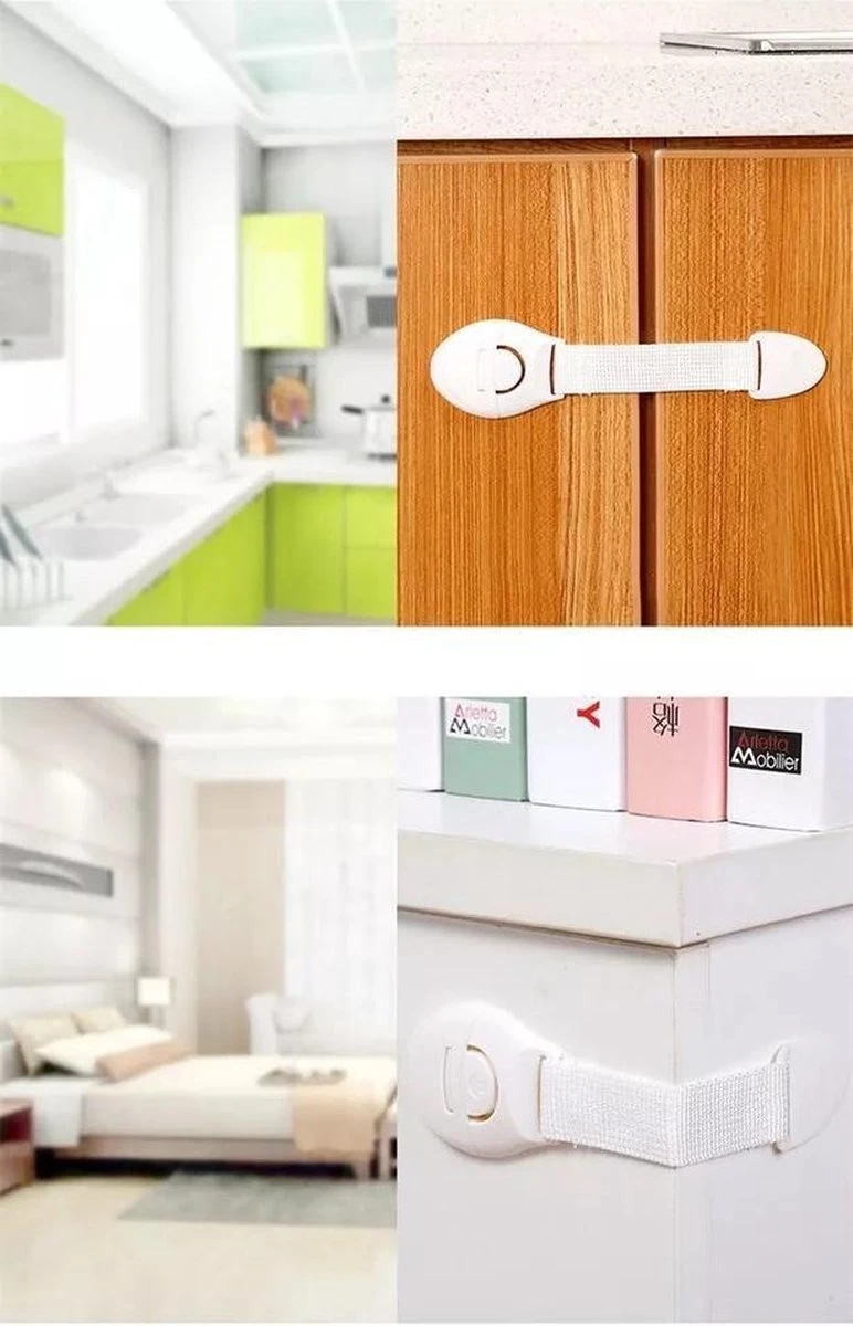 Geen boren en schroeven of gereedschap nodig met deze zelfklevende baby locks. Scherm uw kasten en dergelijken af van uw kinderen met deze handig veiligheidssloten. De sloten hebben een drukslot die kinderen niet open kunnen krijgen. De uiteinden zijn voorzien van hoge kwaliteit plakstrips die zeer stevig blijven zitten maar geen resten achterlaten bij verwijdering.