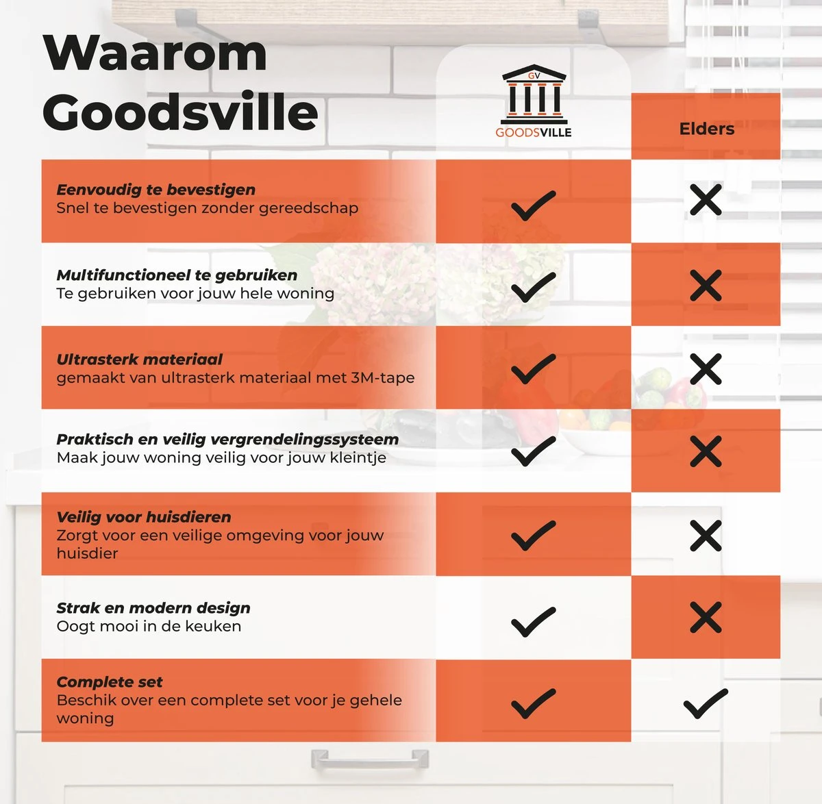 Baby’s en kinderen gaan graag op ontdekkingstocht; dat kan gevaarlijke situaties opleveren als ze net het verkeerde keukenkastje met schoonmaakmiddelen openen. Daarom introduceren wij onze handige Kindersloten.