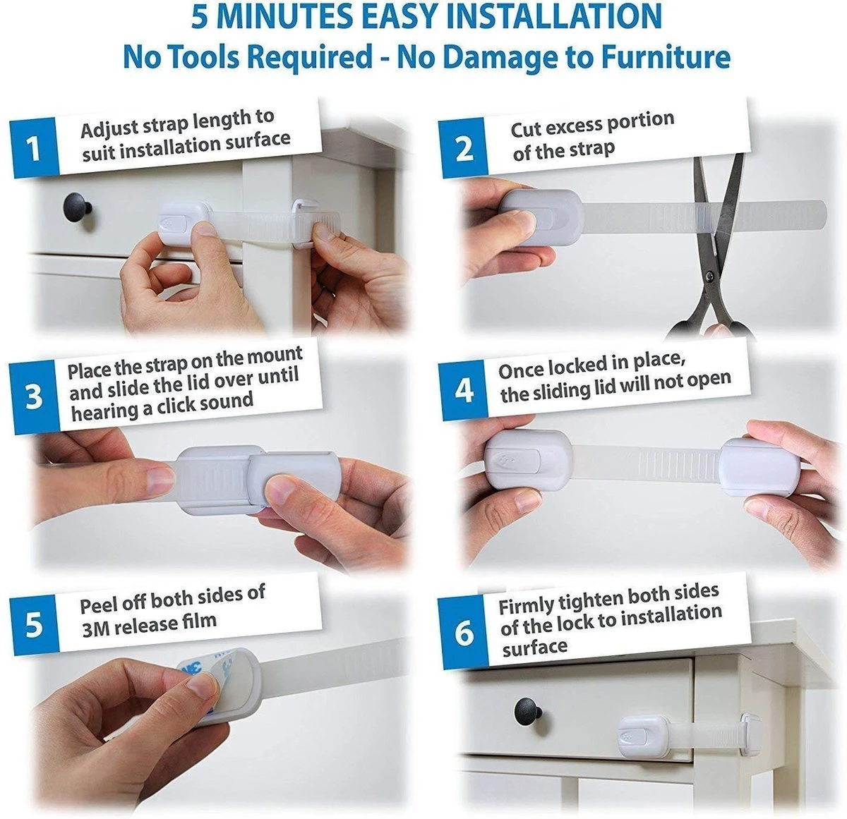 Het veiligheid van je kinderen is één van de belangrijkste zaken als het gaat om kinderveiligheid. Met deze sterke 3M tape kinderslot op kast of lade kun je voorkomen dat je baby of kind bij kostbare of schadelijke producten kan komen. Vaak komen gevaarlijke situaties voort uit situaties waar je niet snel bij stil staat. Loop eens door de woning en bedenk eens wat er allemaal in je kastjes en laatjes ligt, is het wel veilig in huis? En kan je kleine makkelijk met zijn of haar handjes bij de oven of vaatwasser komen? Is de koelkast goed af te sluiten? Allemaal standaard situaties in elk huis, en al deze plekken zijn zeer interessant voor kinderen om te onderzoeken tijdens hun ontdekkingstocht door het huis.