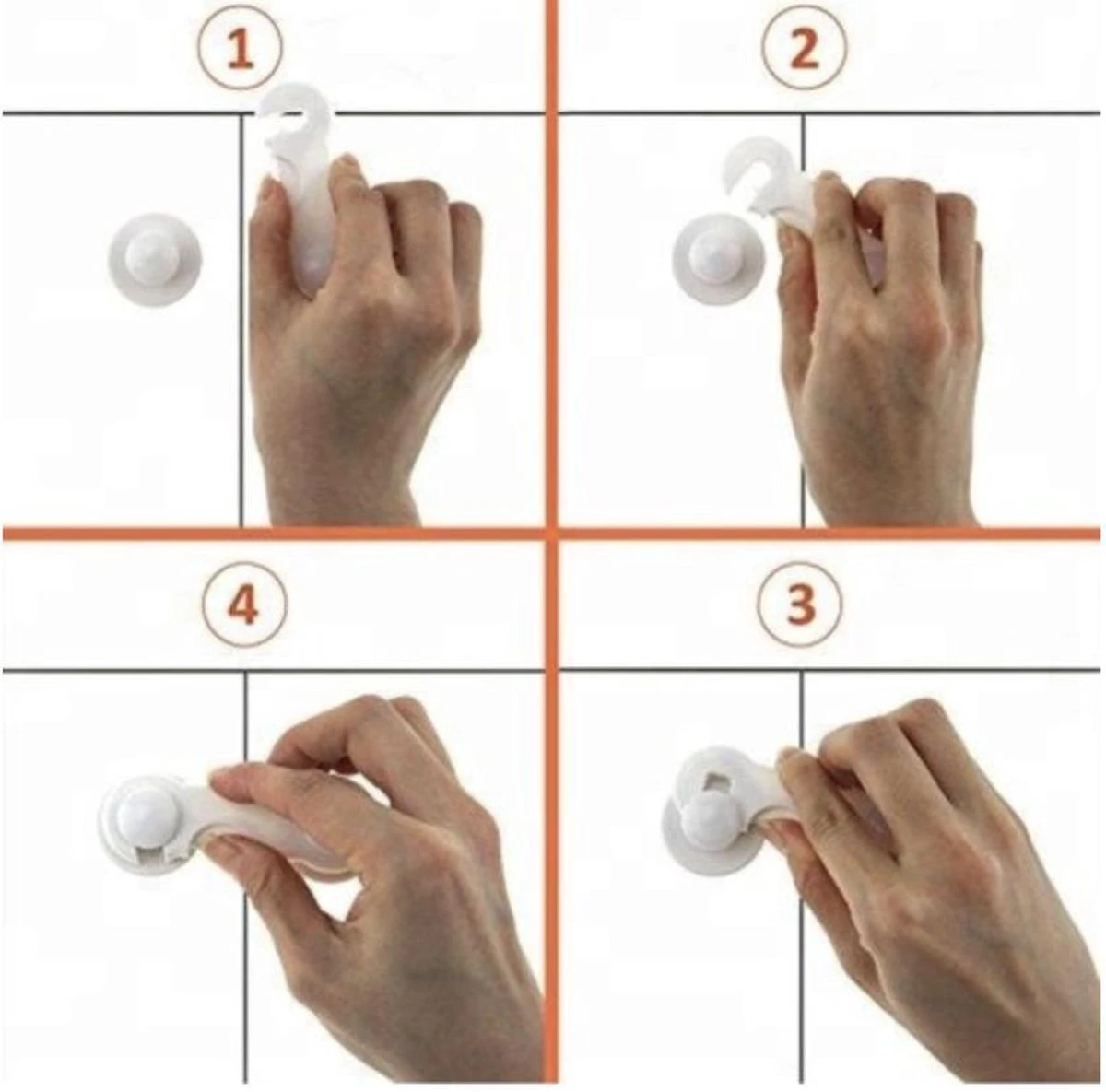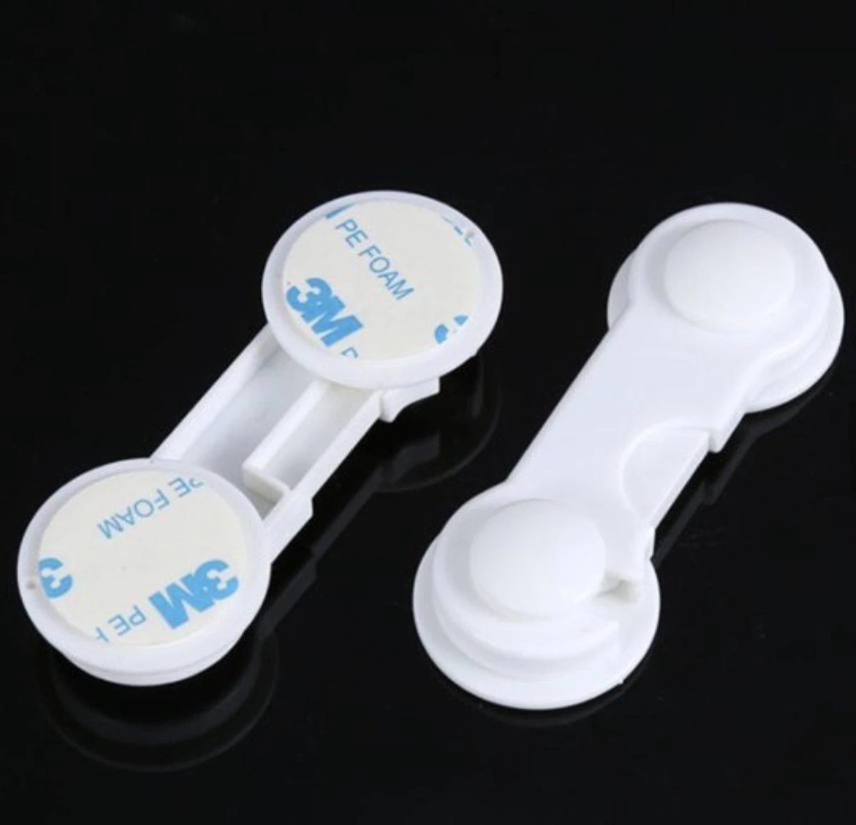 Sluit nu eenvoudig uw kasten, deuren en koelkast af met dit nieuwe veiligheid lock kasthaakje. De bevestiging van dit veilig babyslot gebeurt zonder boren of schroeven , maar met zelfklevende 3M tape.