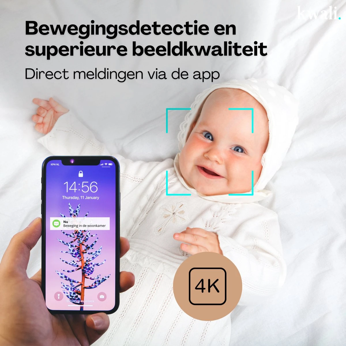 Met de kwali. babyfoon met camera ben je verzekerd van een perfecte kwaliteit. Je krijgt een 4K beeld en kristal helder geluid, waardoor je je kleintje altijd in de gaten kan houden.