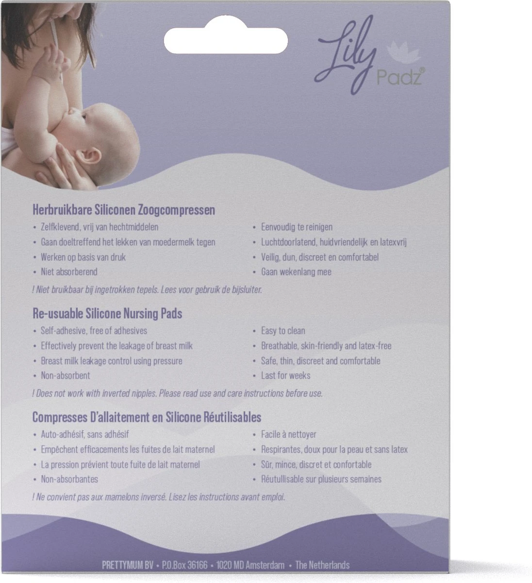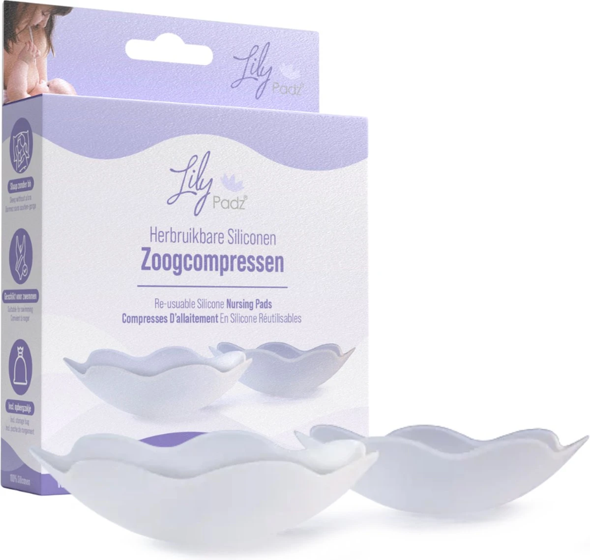 LilyPadz Zoogcompressen van siliconen voorkomen het lekken van moedermelk, zijn wasbaar, onzichtbaar en gebruik je steeds opnieuw. Er valt dus niets te absorberen.