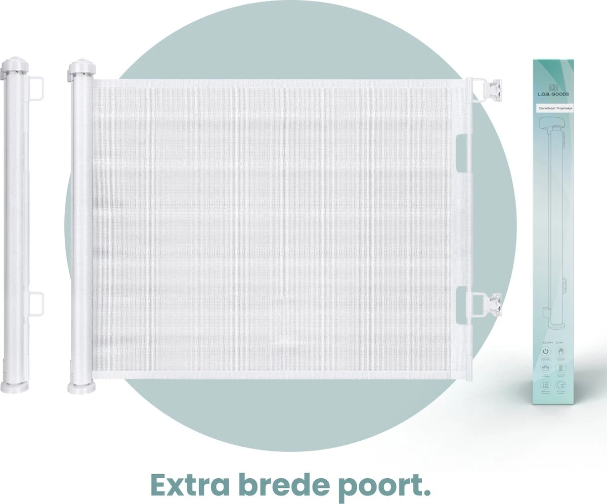 Verlang jij ook naar een veilige omgeving voor je kind en/of huisdier, dan is de oprolbare deur- en trapbeveiliging van L.O.B. GOODS de oplossing! Het traphekje van L.O.B. GOODS creëert een veilige omgeving voor uw kind en/of huisdier. In tegenstelling tot andere traphekjes is dit traphekje voorzien van een oprolsysteem, ideaal wanneer u het hekje niet nodig heeft en/of ruimte wil besparen!