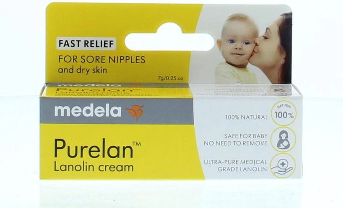 In de eerste paar dagen en weken van borstvoeding, komt het bij veel vrouwen voor dat ze pijnlijke tepels en een droge huid hebben. Purelan™ lanolinezalf biedt snelle verlichting bij pijnlijke tepels en een droge huid. Smeer de zalf na de borstvoeding op de tepel, dan kan de zalf intrekken tot de volgende voeding. Het is 100% natuurlijk en veilig voor je baby, de zalf hoeft niet te worden verwijderd voor de borstvoeding.