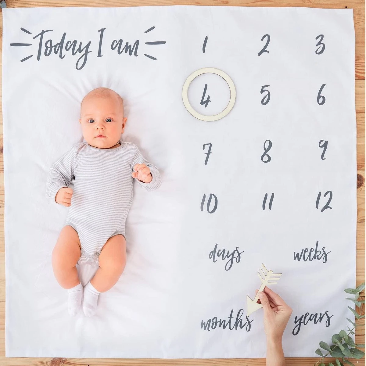 Ben je op zoek naar een origineel kraamcadeau waarmee je een nieuwe moeder absoluut blij mee zult maken? Dan is dat zonder twijfel onze baby mijlpaaldeken. Elke moeder zal het leuk vinden om de stapjes van haar baby vast te leggen met deze set. Bij deze set krijg je meegeleverd een houten pijl en een cirkel om aan te duiden hoeveel dagen, weken of maanden je kindje is.
