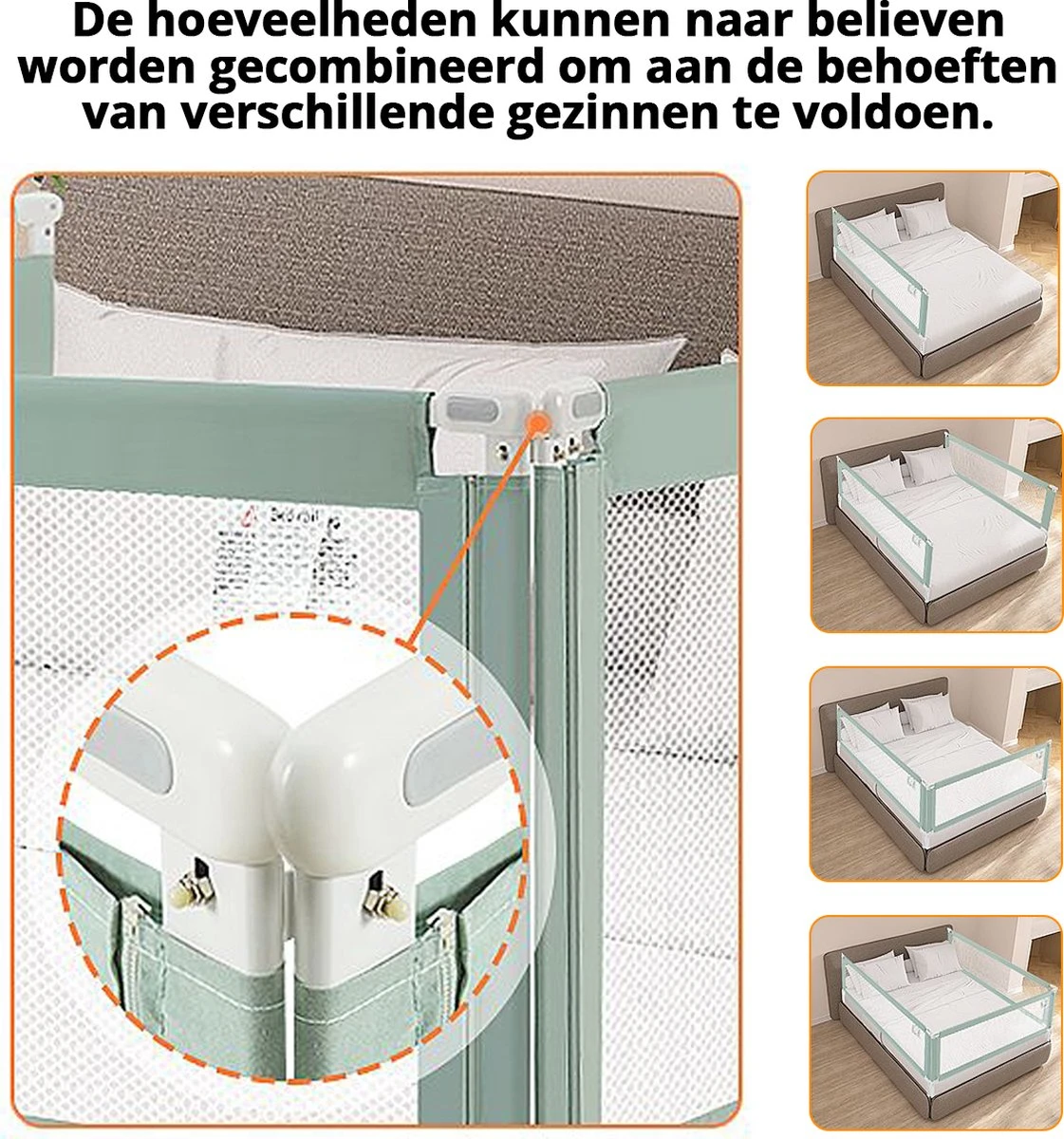 Bouw een stevig kasteel voor uw baby’s: Baby’s zijn altijd nieuwsgierig naar de wereld, zelfs in bed zijn ze net zo actief. Op dit moment is een stevig en veilig bedhek nodig om hun veiligheid te garanderen en te voorkomen dat ze van het bed vallen. Ons bedhek is volledig vernieuwd om uw baby beter te beschermen. Opmerking: meet voor aankoop de afmetingen van uw bed. Ons voorstel is slechts een standaard referentie.