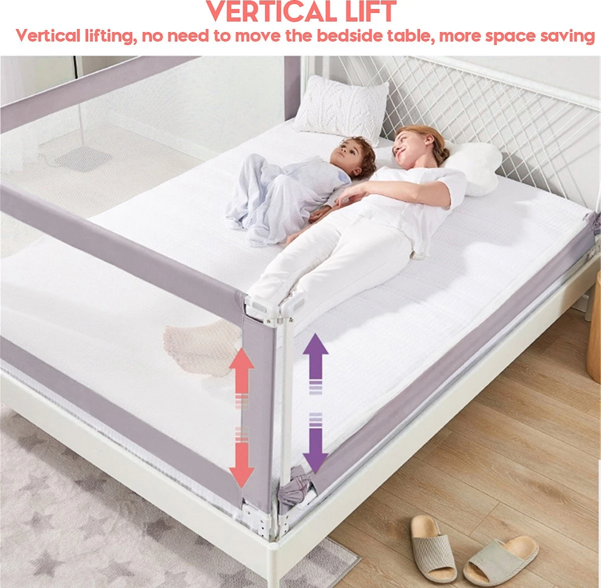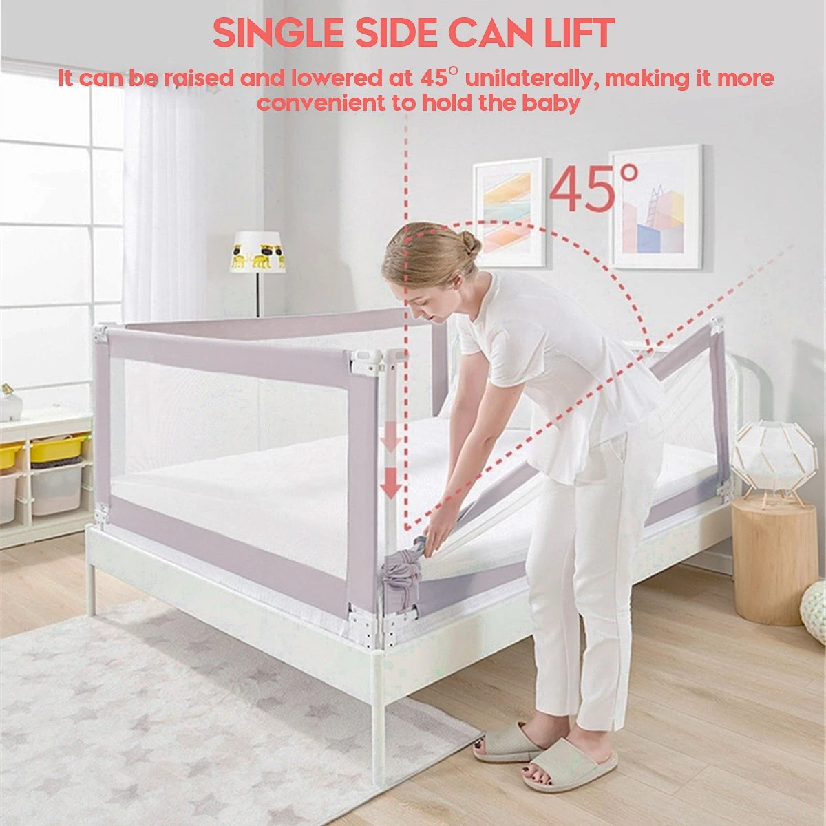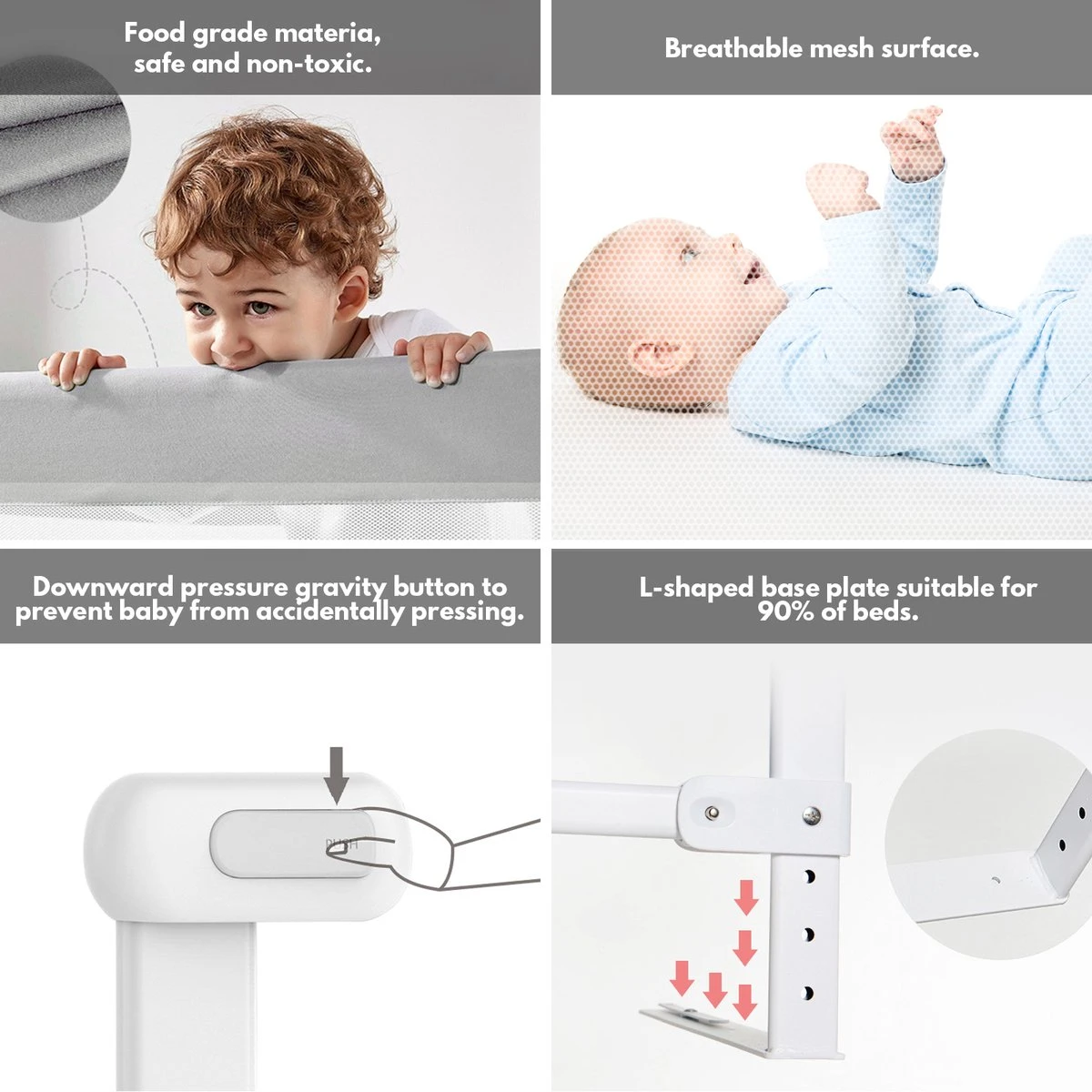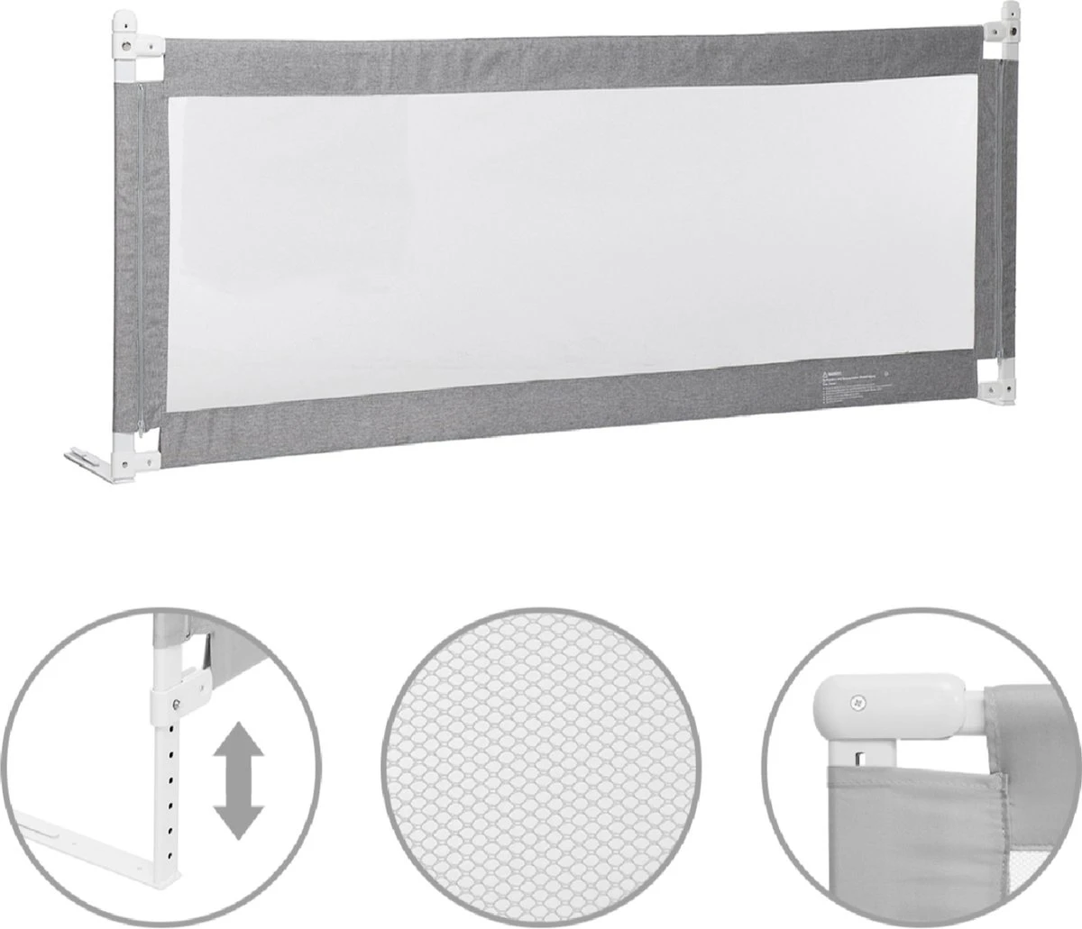 Dit bedhek is perfect voor de kleine slapers. Het bedhek kan naar beneden worden geklapt als het niet wordt gebruikt en is handig voor het opmaken van het bed. De volledig stalen constructie maakt het zeer stevig en duurzaam. Dit bedhek heeft een lengte van 150cm/200cm en een hoogte van 66-90cm voor extra veiligheid. De exclusieve zwaartekrachtknop voorkomt dat uw kind er per ongeluk op drukt. Het past op verschillende maten matrassen. De eenvoudige installatie zonder gereedschap maakt dit het perfecte probleemloze extra lange bedhek. Aanbevolen voor kinderen van 0 tot 5 jaar.